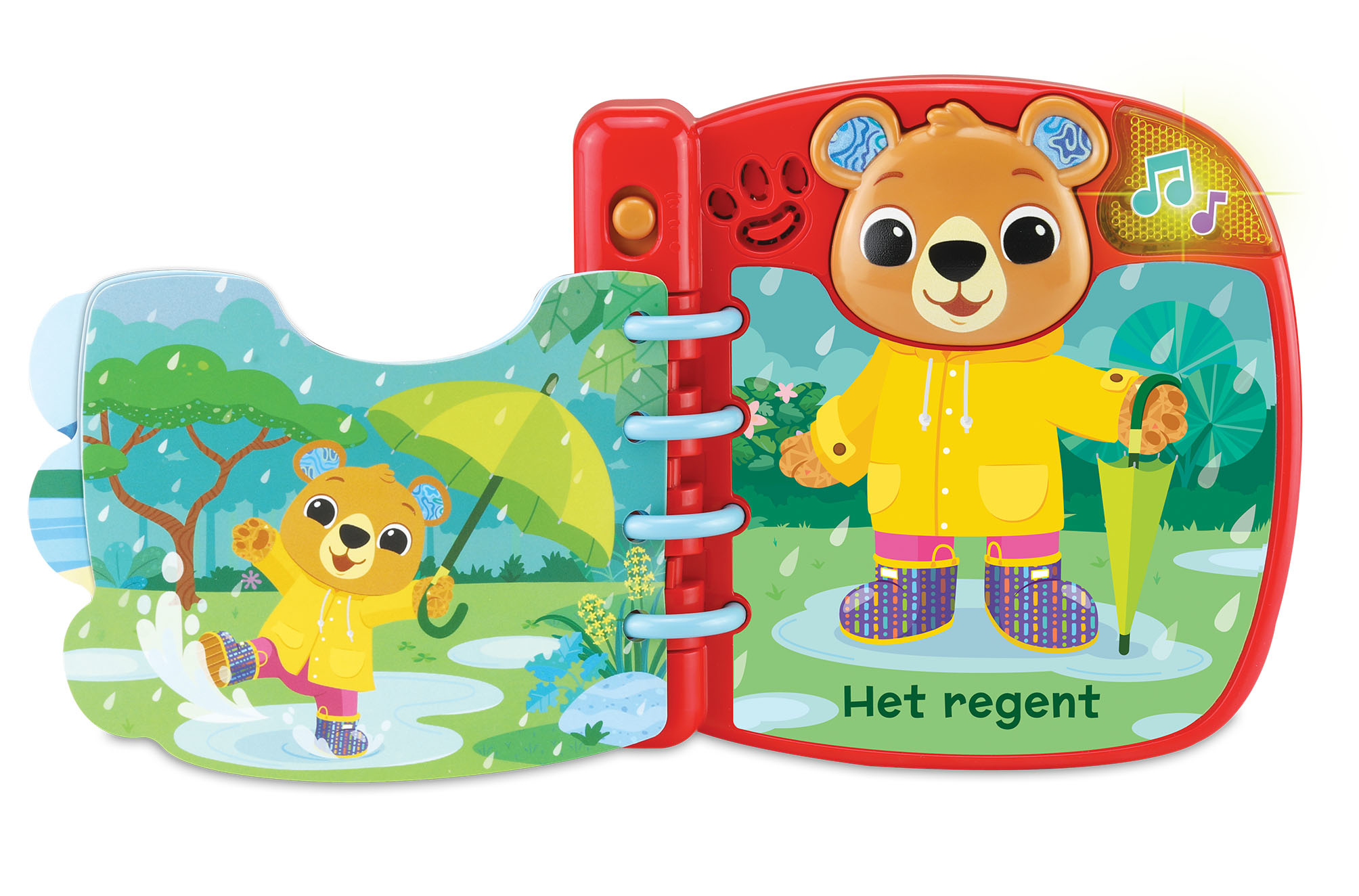 Het vrolijke boekje ‘Kleren kiezen met Beer’ laat kleintjes spelenderwijs kennismaken met weersomstandigheden en de kleding die daarbij past. Sla de bladzijden om en luister naar de vrolijke reacties. Druk op de beer-toets om grappige zinnetjes, gezong