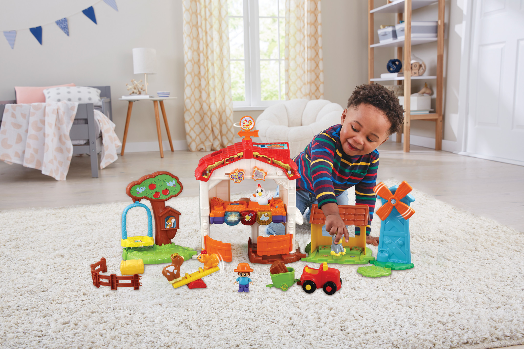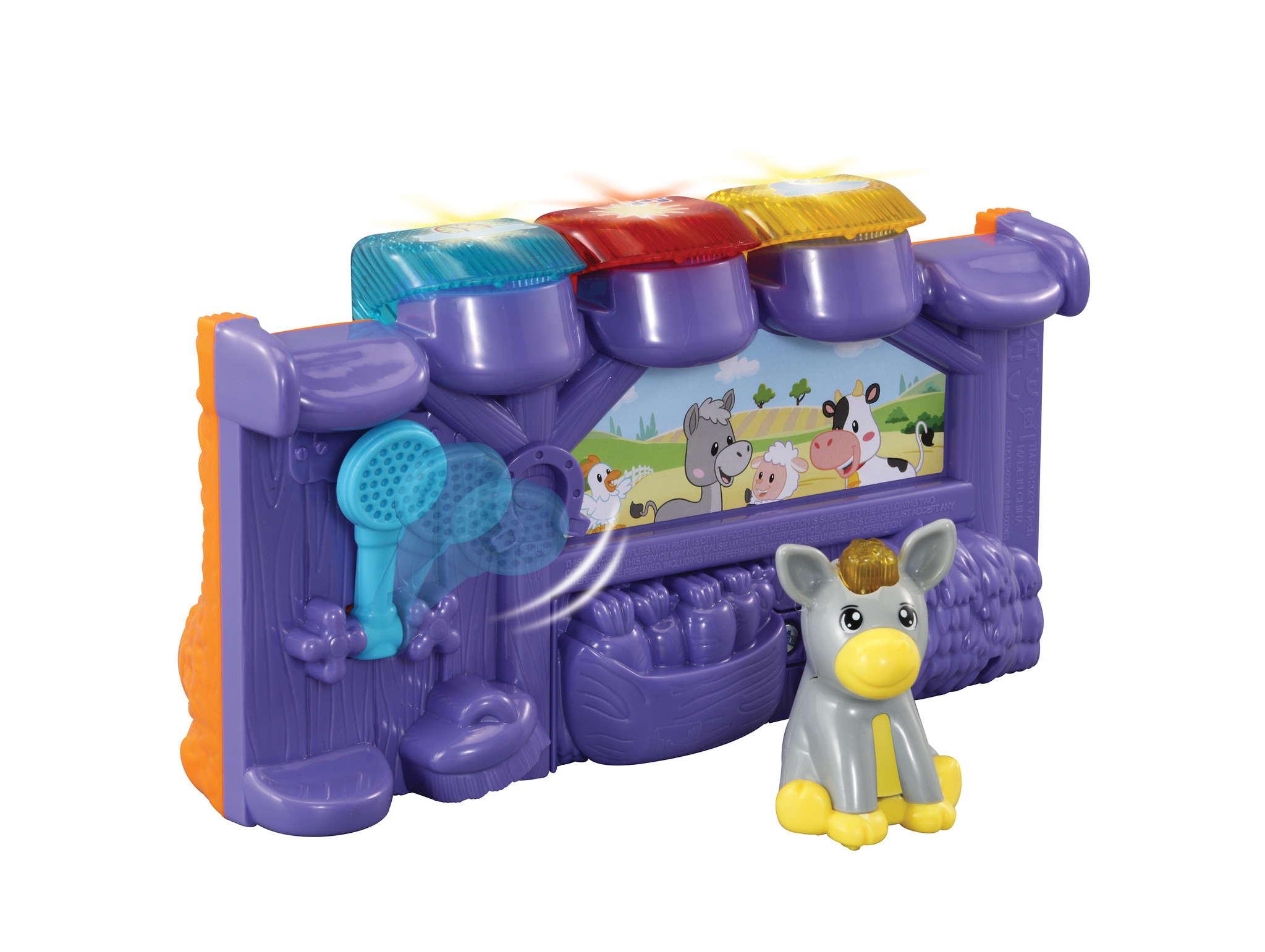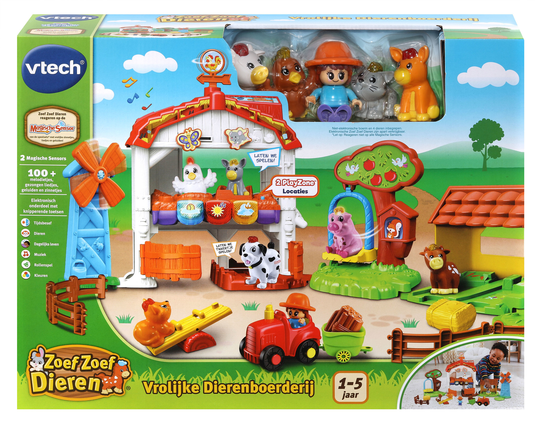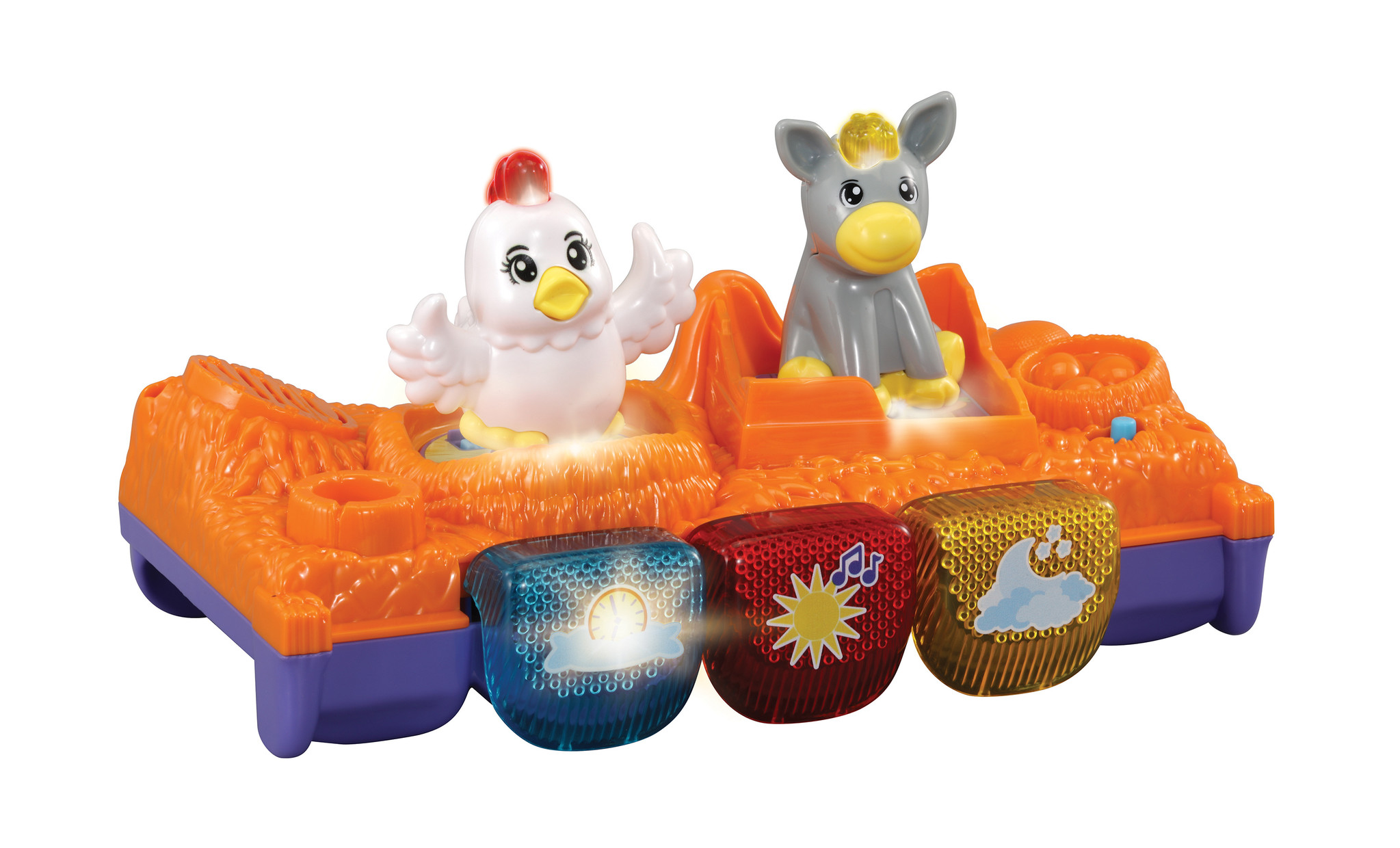 Druk op de knipperende toetsen om kennis te maken met dagelijkse bezigheden en klusjes op de boerderij. Plaats de boerin en de dieren op de PlayZone-locaties om vrolijke zinnetjes, dierenweetjes, grappige geluiden en melodietjes te horen. Gebruik de do