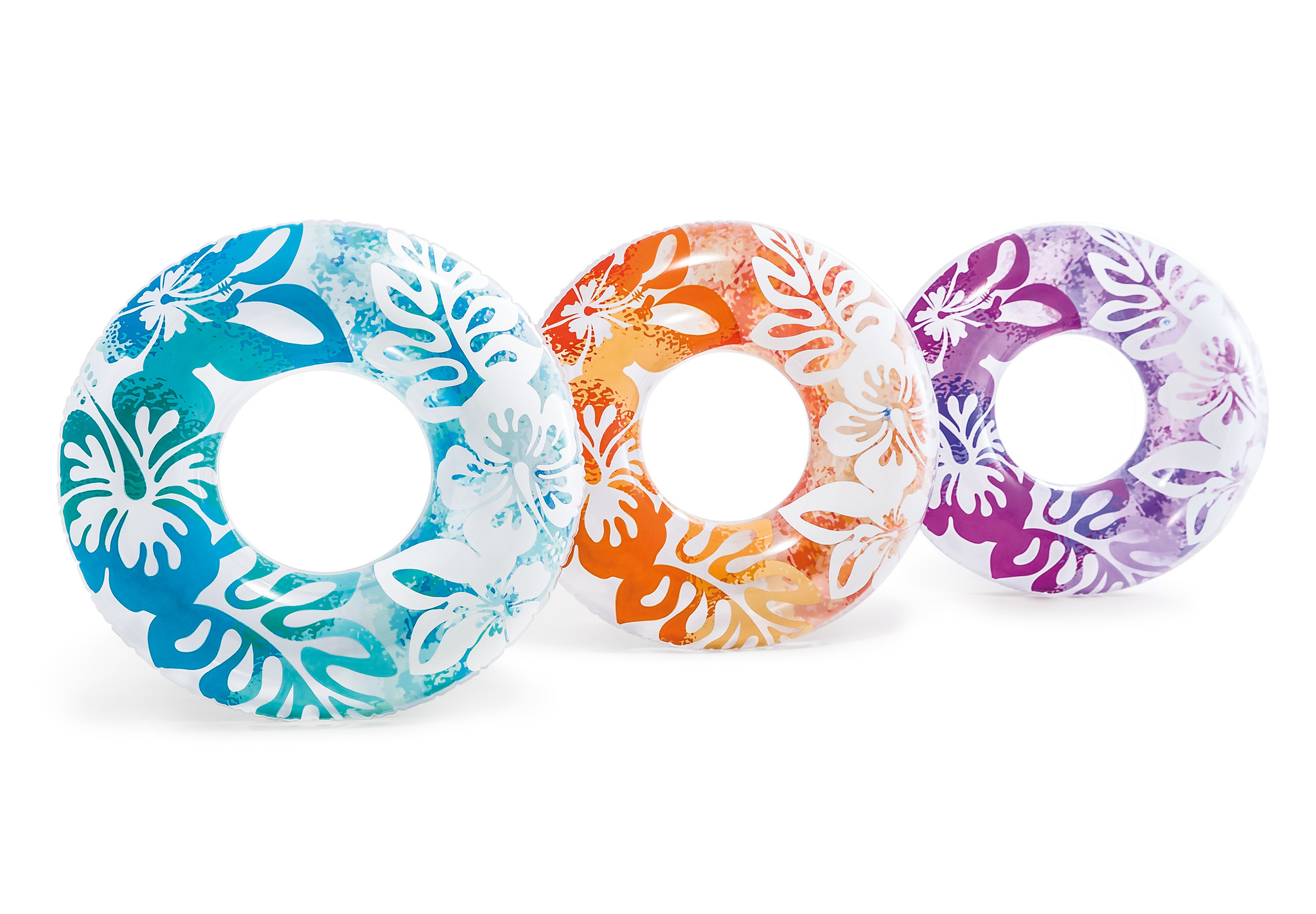 Zwemring (Ø91cm) – CLEAR COLOR met bloemenprint (oranje OF blauw OF paars)