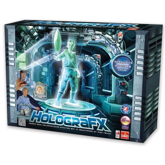 Jij bent de ster van de HolograFX show.. Met de stunts op dit fraaie 3D toneel zul je anderen versteld doen staan! Presenteer een Magic show waarbij je met behulp van hologrammen allerlei griezelige acts laat zien. Hoe is dit allemaal mogelijk?! Hologrammen verschijnen en verdwijnen… teleporteer ze van de ene naar de andere wereld! Jij kent de geheimen en jouw publiek gelooft zijn ogen niet! Download de gratis App en start je eigen Magic show !