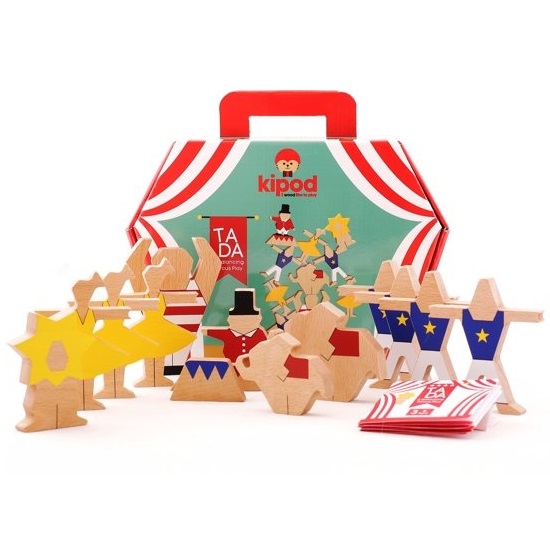 Een houten spel voor kinderen van alle leeftijden. Het spel bestaat uit verschillende vrolijke en kleurrijke circus-artiesten die je op elkaar moet plaatsen door hun balans-punt te zoeken.