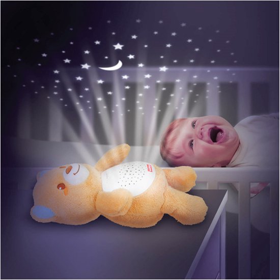 Sterrenlichtbeer 2 in 1 • 2-in-1 teddybeerprojector en nachtlampje • Projecteert een rustgevende sterrenhemel • Zachte gloed in verschillende kleuren • Druk op de muziekknop om natuurgeluiden of rustgevende slaapliedjes te horen.