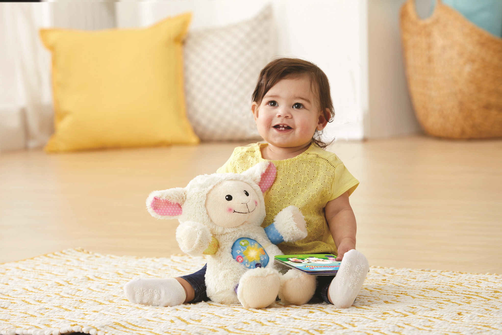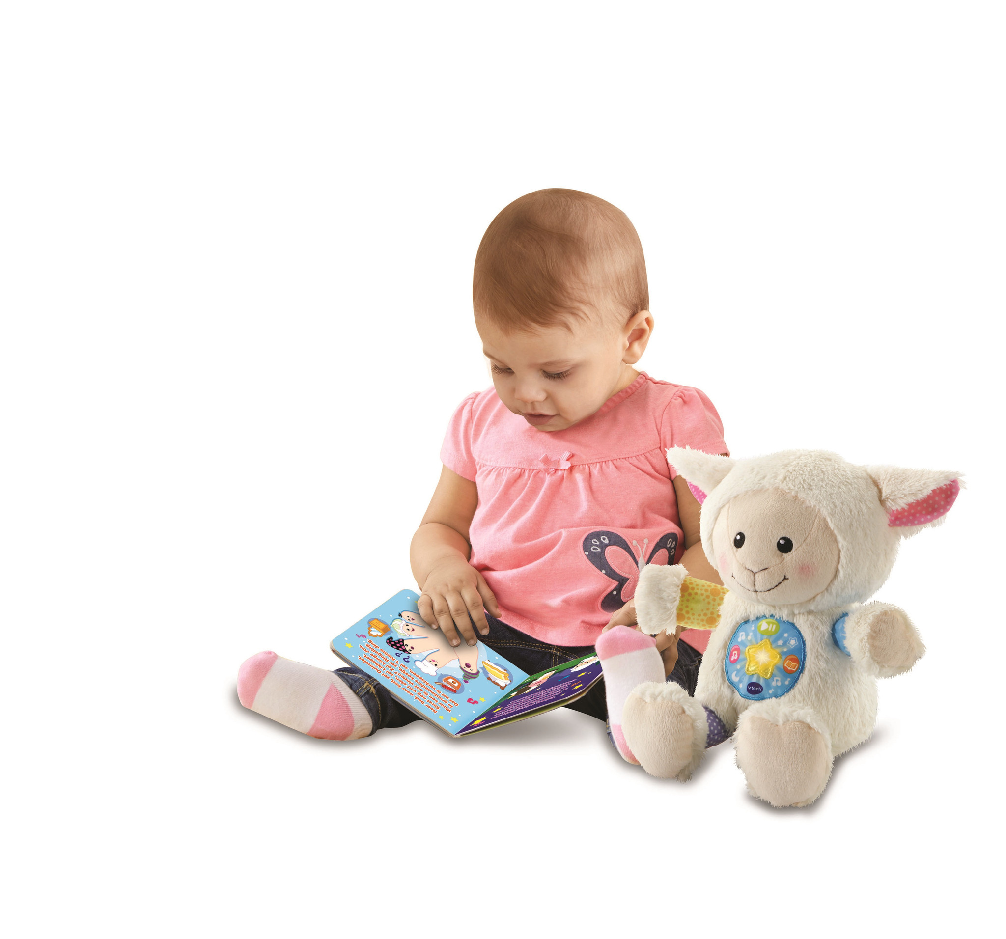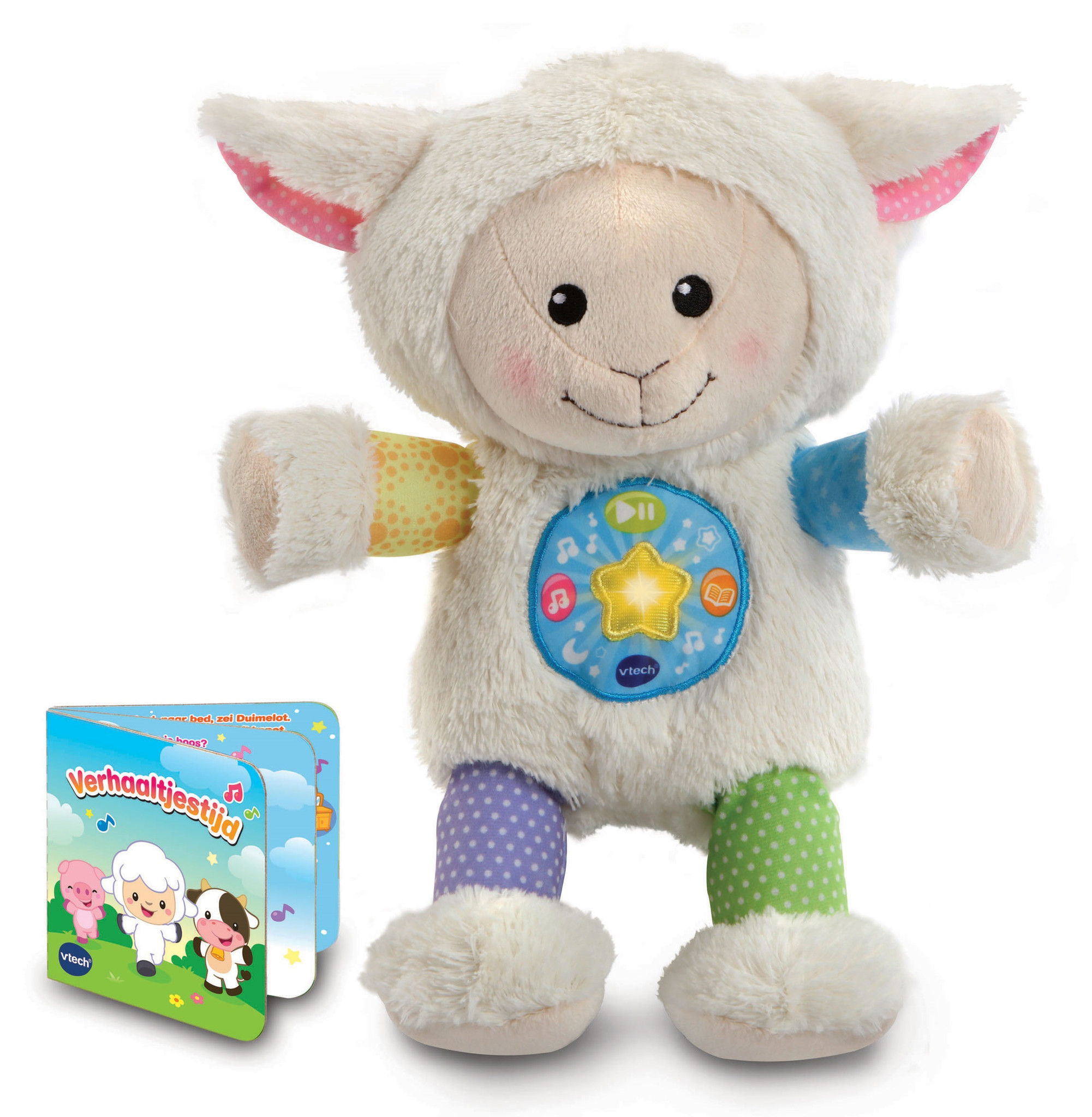 Dit schaapje bevat een boekje met 4 bekende verhaaltjes die de luistervaardigheid stimuleren. Luister naar de vrolijke zinnetjes, gezongen liedjes en verhaaltjes tijdens de dag-speelstand. Het stervormige lichtje dat langzaam aan en uit gaat, de rustgeven