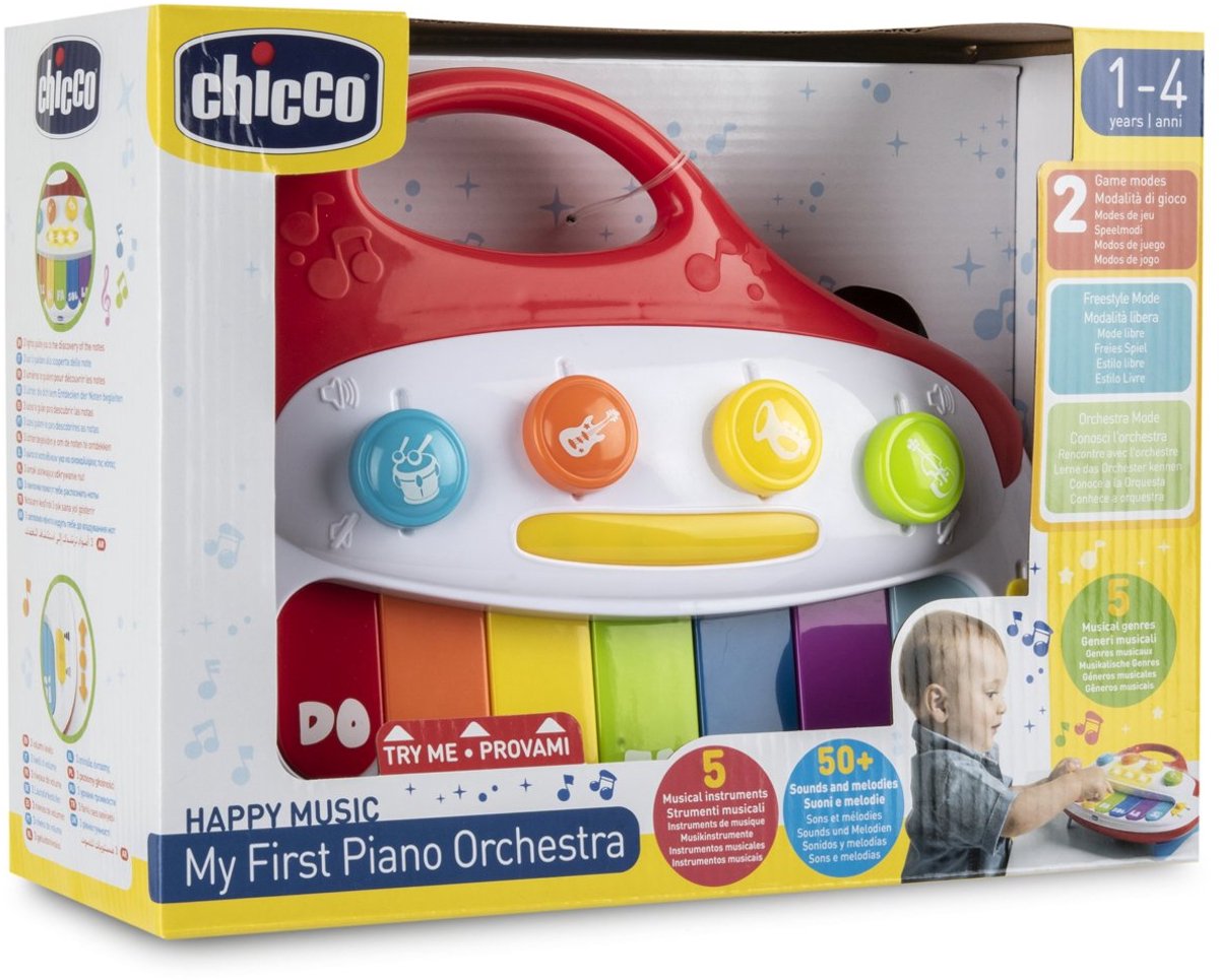 Speel als op een echte piano: gebruik de 7 gekleurde toetsen om muzieknoten te leren en met muziek te experimenteren.