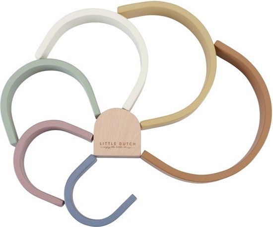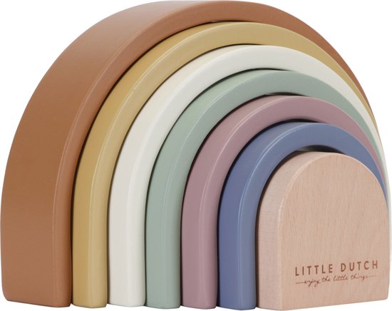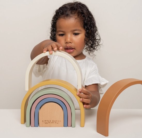 De Little Dutch Houten Regenboog is een stapeltoren zoals je hem nog nooit hebt gezien. De regenboog bestaat uit 7 bogen die op en in elkaar passen. Met deze halfronde vormen maakt je kindje allerlei unieke creaties. Bovendien kun je de bogen ook als treintunnel, een huisje voor kleine poppetjes of als bergen voor autootjes gebruiken.