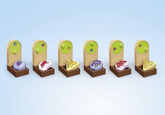 Speciale productkenmerken: – Winkelwagentje kan met figuur worden gespeeld – Drie stapelbare dozen met bijpassende gevormde blokken voor het sorteren van kleuren en vormen – Drie gevormde blokken bedrukt met zes verschillende soorten fruit en groenten om