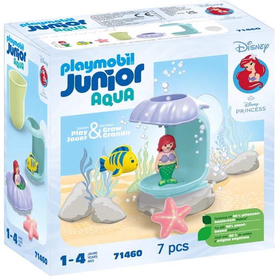 Junior & Disney: Ariël’s Schelpendouche 71460. Geschikt voor kinderen van 1 tot 4. De set bevat 7 onderdelen.