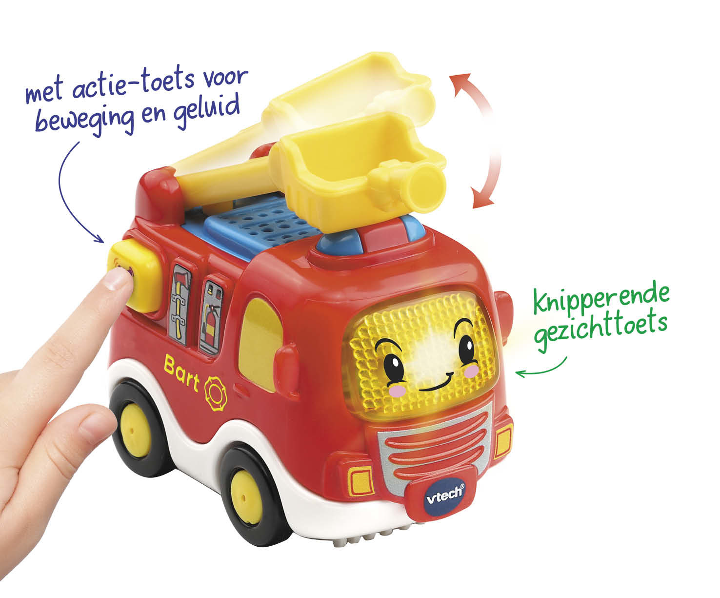 Rijden en leren met de Toet Toet Auto’s van VTech! Druk op de knipperende gezichttoets om geluidseffecten, vrolijke zinnetjes en gezongen liedjes te horen. Beweeg de brandweer en hoor grappige geluiden en muziek. K