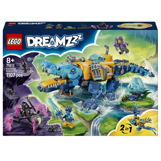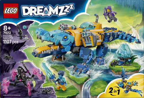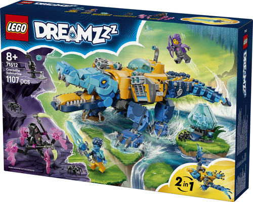 Kinderen kunnen een duik nemen in hun creativiteit met de LEGO® DREAMZzz™ Krokodilonderzeeër (71512) bouwset voor jongens en meisjes vanaf 8 jaar. Het model biedt 2 bouwmogelijkheden boordevol actie: dromers kunnen de onderzeeër ombouwen tot een krokodil of een vliegende adelaar.