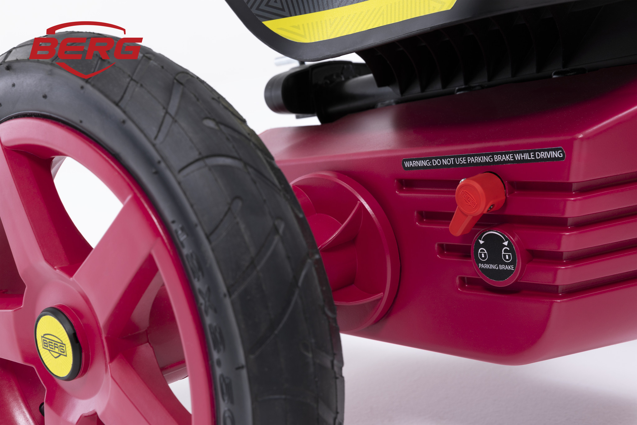De BERG Rally Pearl is een met de spannende kleurencombinaties en de compacte vorm een echte eye-catcher in de buurt! De skelter heeft een kleine draaicirkel, waardoor de skelter heel wendbaar en manoeuvreerbaar is. De Rally Pearl is uitgerust met het