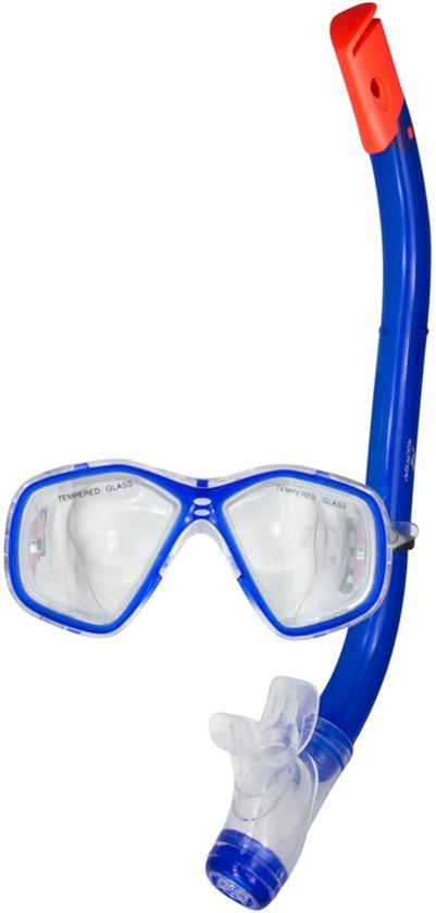 Deze blauwe Bergen III Junior is een snorkelset voor kinderen bestaat uit een duikbril en een snorkel. Met deze set kun je onder water kijken en toch blijven ademhalen. De duikbril sluit goed aan rond de ogen en neus en het mondstuk van de snorkel is flex
