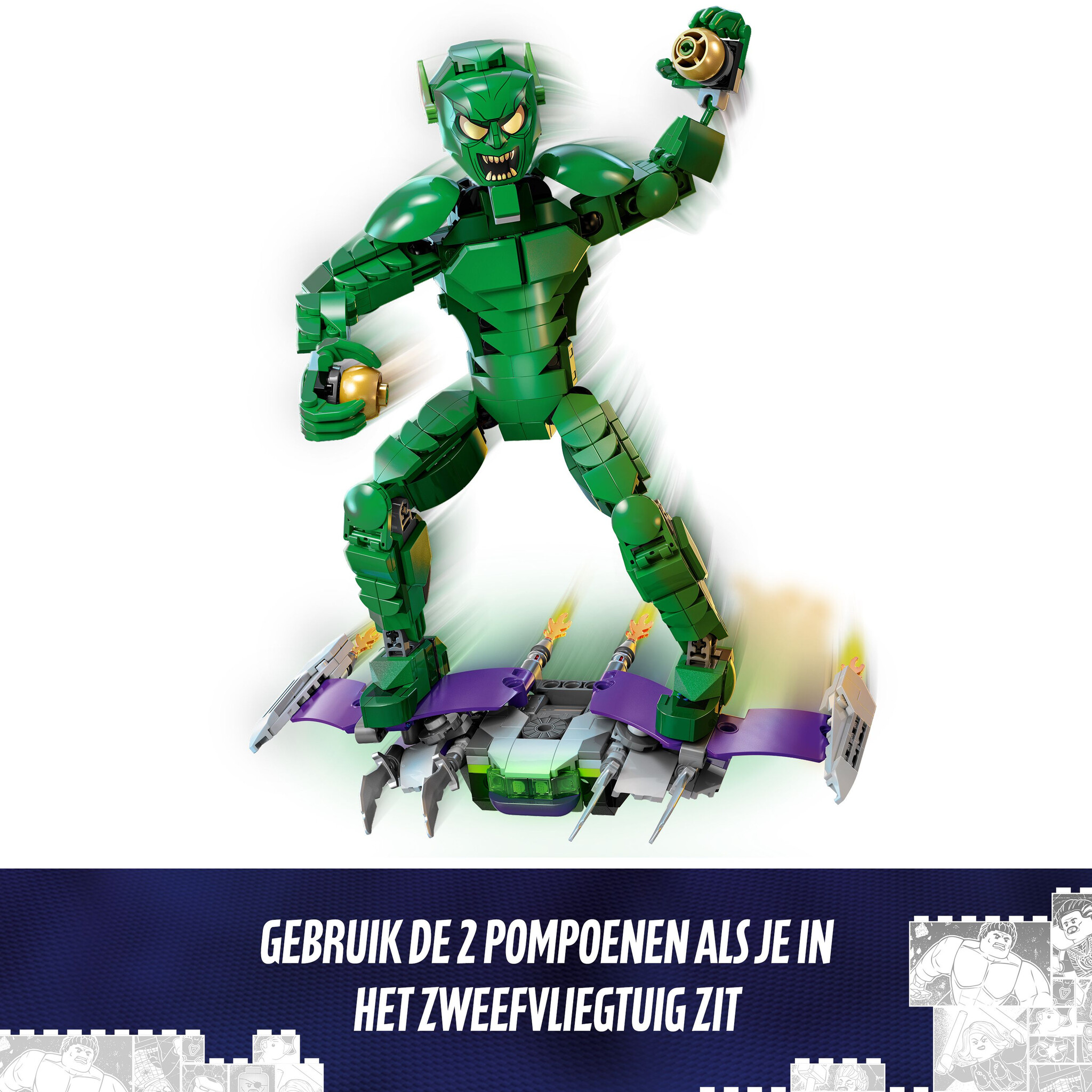 Geef kinderen avonturen uit de Marvel film in eigen handen met deze verstelbare LEGO® Marvel Green Goblin bouwfiguur (76284) – het ultieme Spider-Man schurkenbouwspeelgoed voor kinderen vanaf 8 jaar.