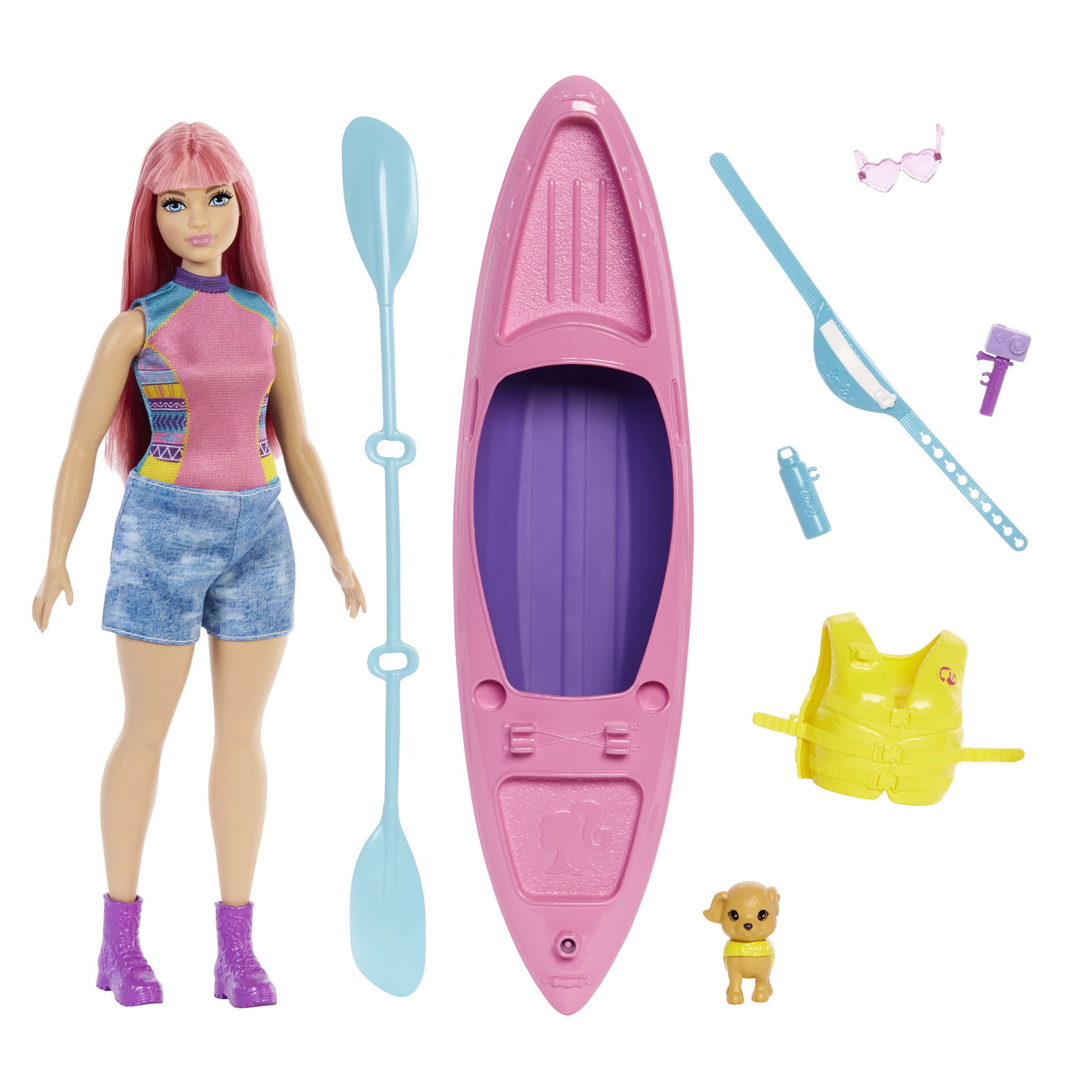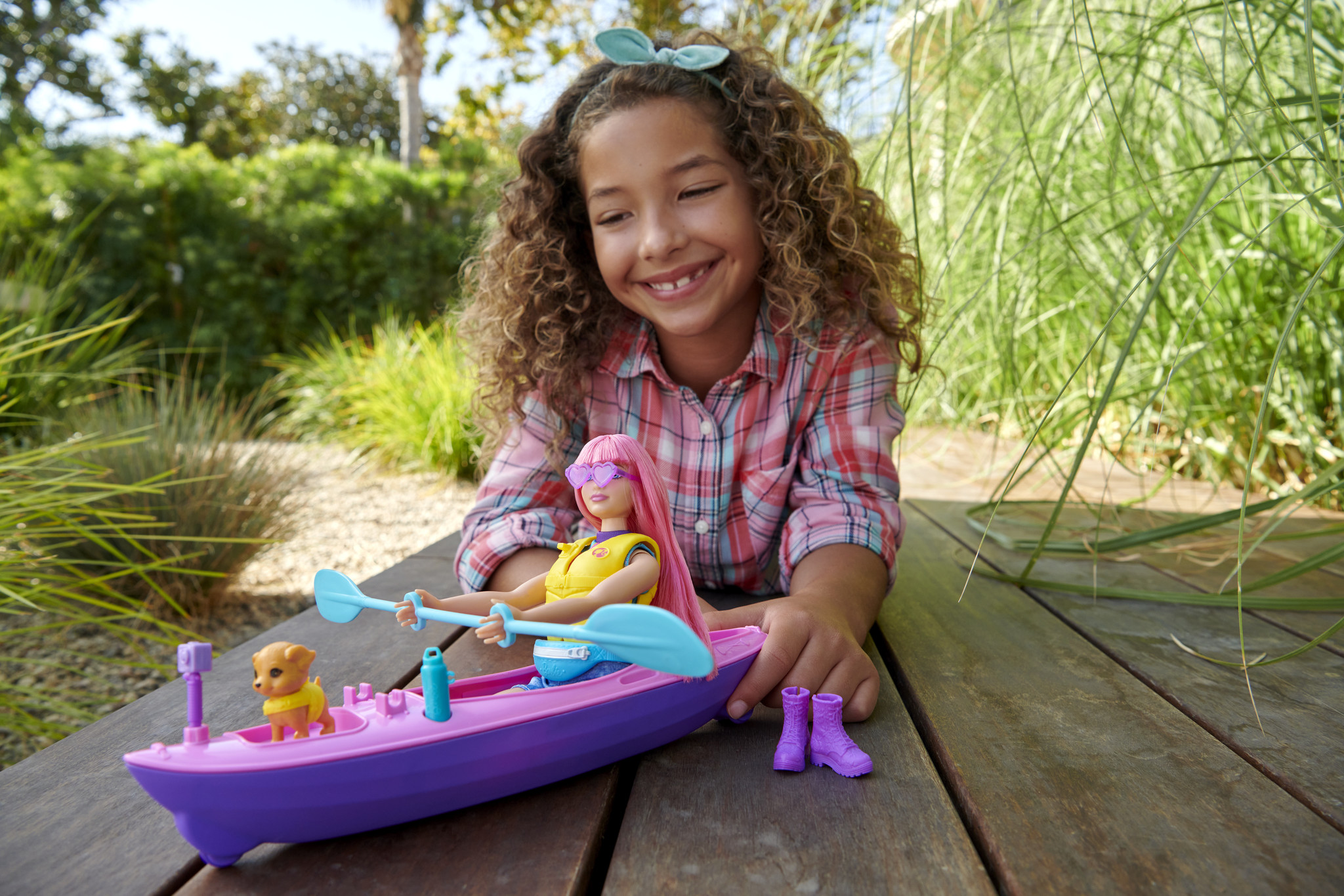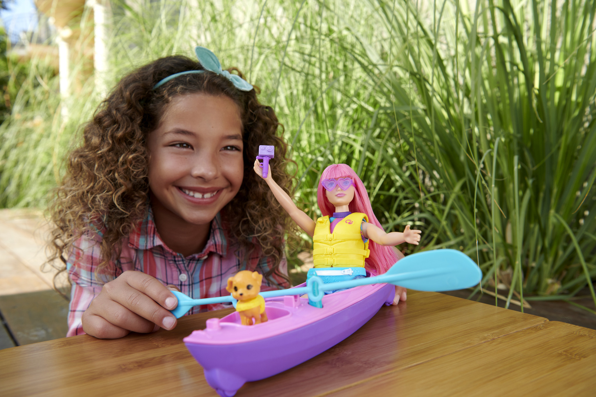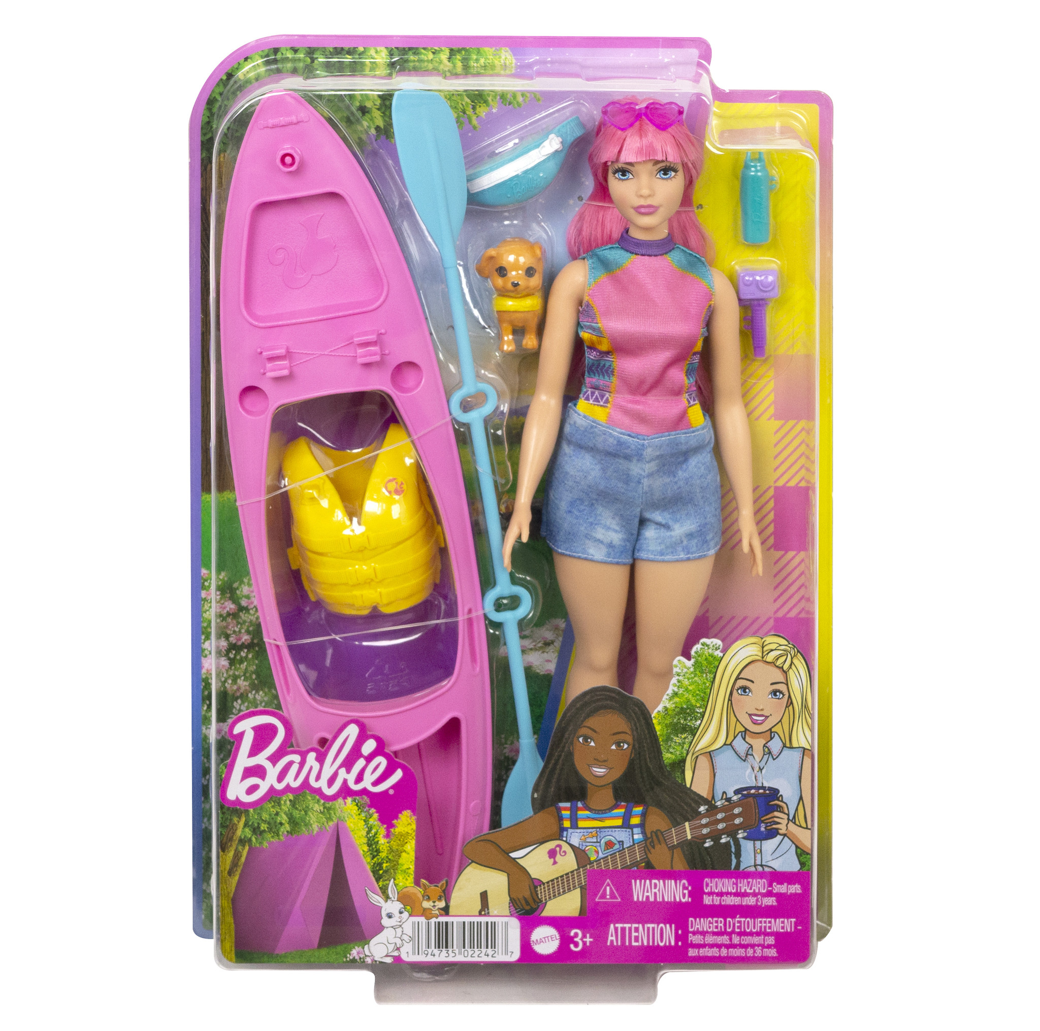 Trek eropuit in de vrije natuur en beleef veel kampeerplezier met de Daisy pop die is geïnspireerd op de succesvolle Barbie serie It Takes Two! Help de Daisy pop en haar puppyvriendje hun reddingsvesten aan te trekken en zet ze in de kajak: er is een spec