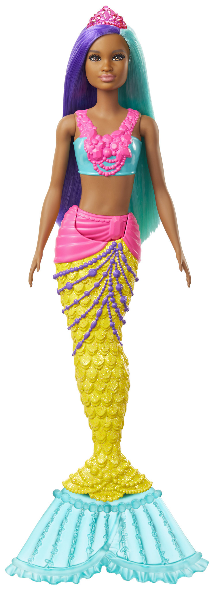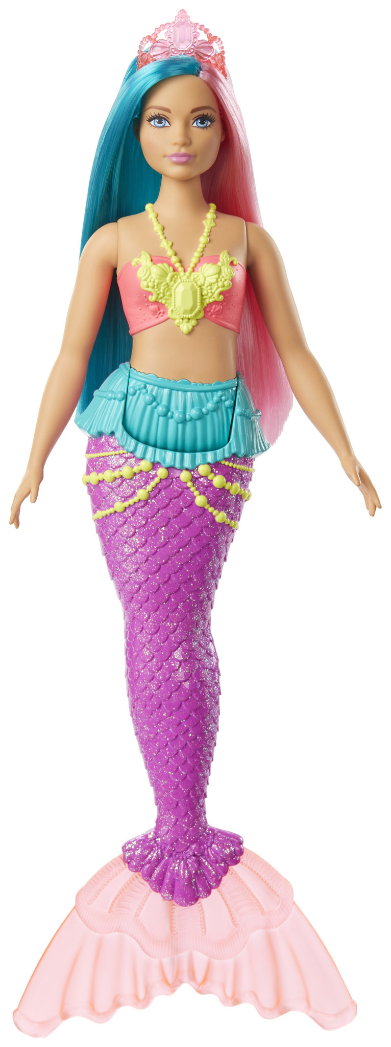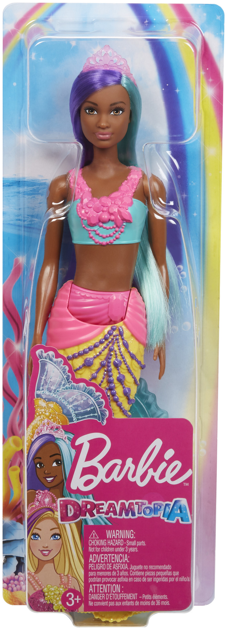 Barbie Dreamtopia zeemeerminpoppen hebben alle kleuren van de regenboog en inspireren kinderen om de mooiste verhalen te vertellen! Deze Barbie zeemeerminpop neemt een duik in het diepe in haar kleurrijke topje en sprankelende staart met fantastische d