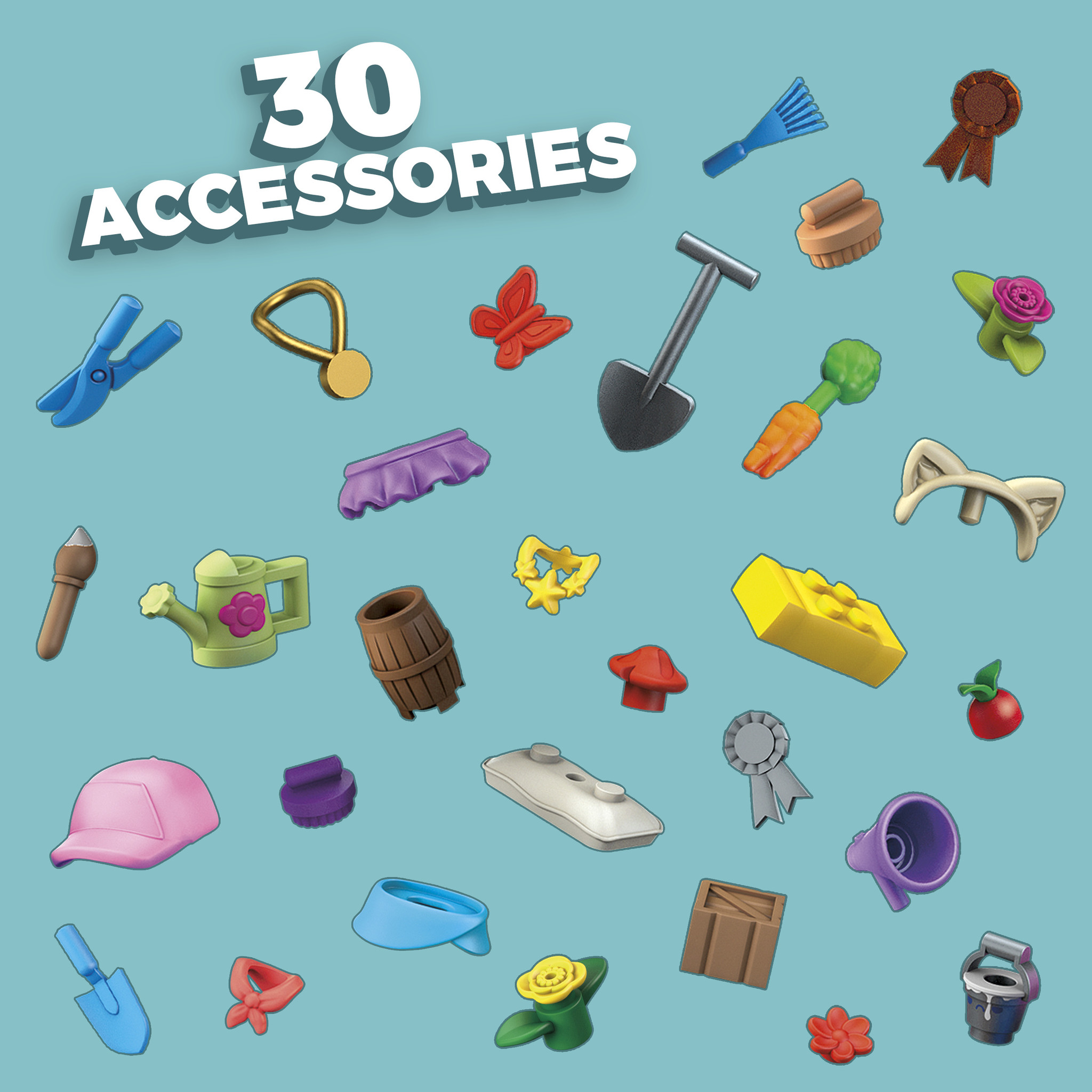 Productbeschrijving: Kleine paardenliefhebbers kunnen een dag doorbrengen in de paardenstallen met 3 Barbie micropoppen en 9 dieren. Kinderen bouwen spelenderwijs de schuur waarin ze voor dieren kunnen zorgen. Ze voeren en verzorgen de 2 paarden, 2 konijn
