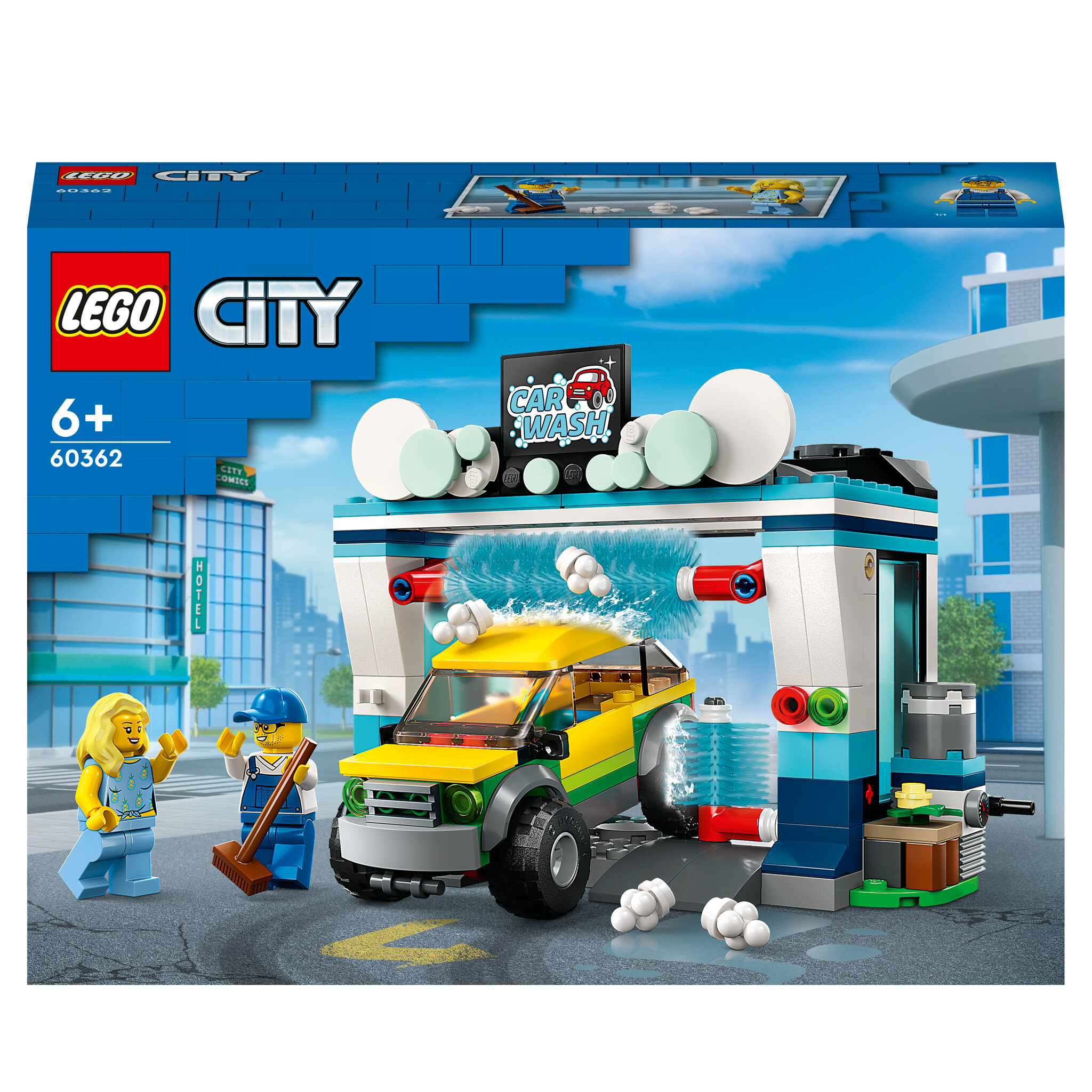 Auto’s schoonmaken is kinderspel met de LEGO City Autowasserette (60362) set voor kinderen vanaf 6 jaar met draaiende wasborstels, beweegbare drogers, een zeepdispenser, een bandenpomp en een speelgoed auto. Voeg de mini figuren van de chauffeur en medewe