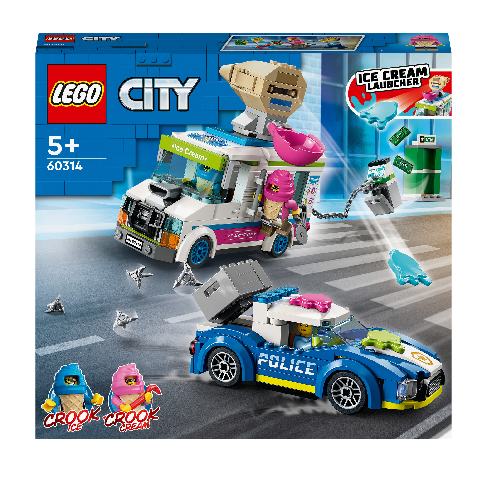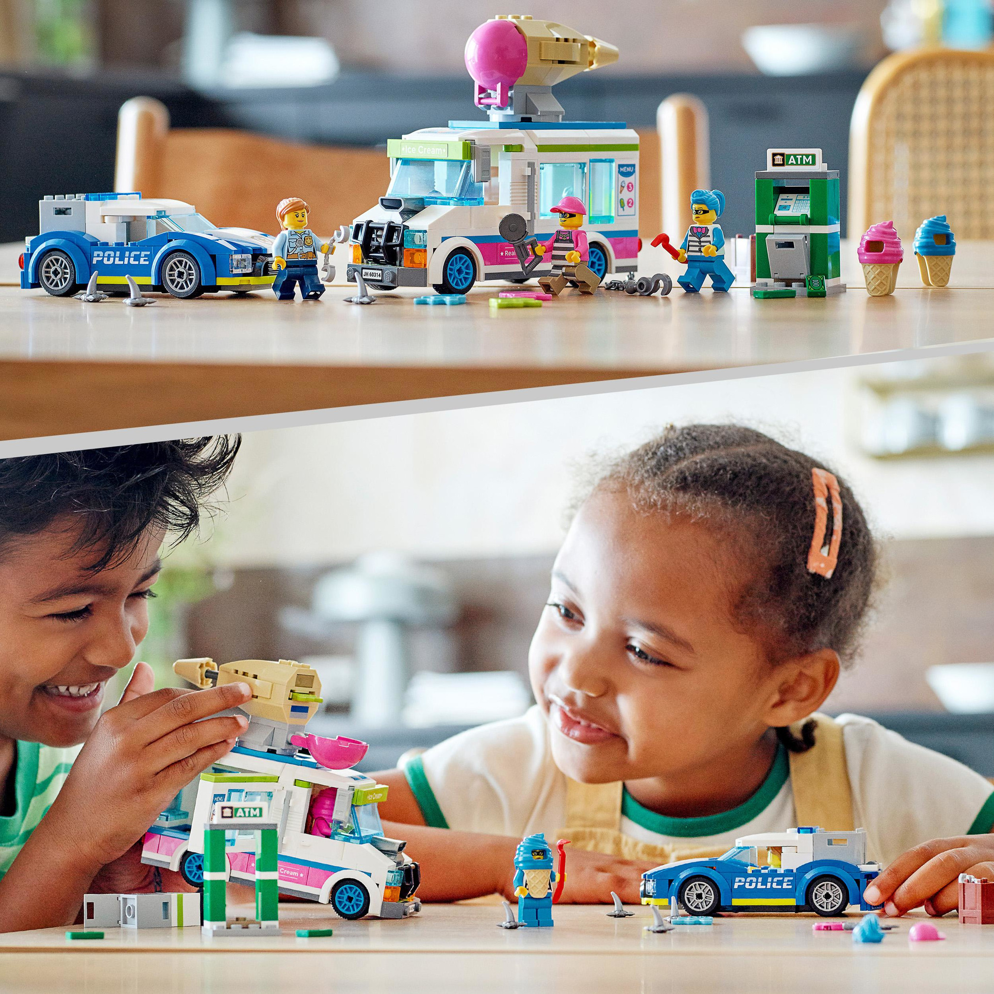 Kinderen kunnen scènes uit de tv-serie LEGO City Adventures naspelen met deze LEGO City IJswagen politieachtervolging (60314) speelset: de ijswagen van de boeven met een kledderschieter, plus een cool onderscheppingsvoertuig van de politie met bandenpr