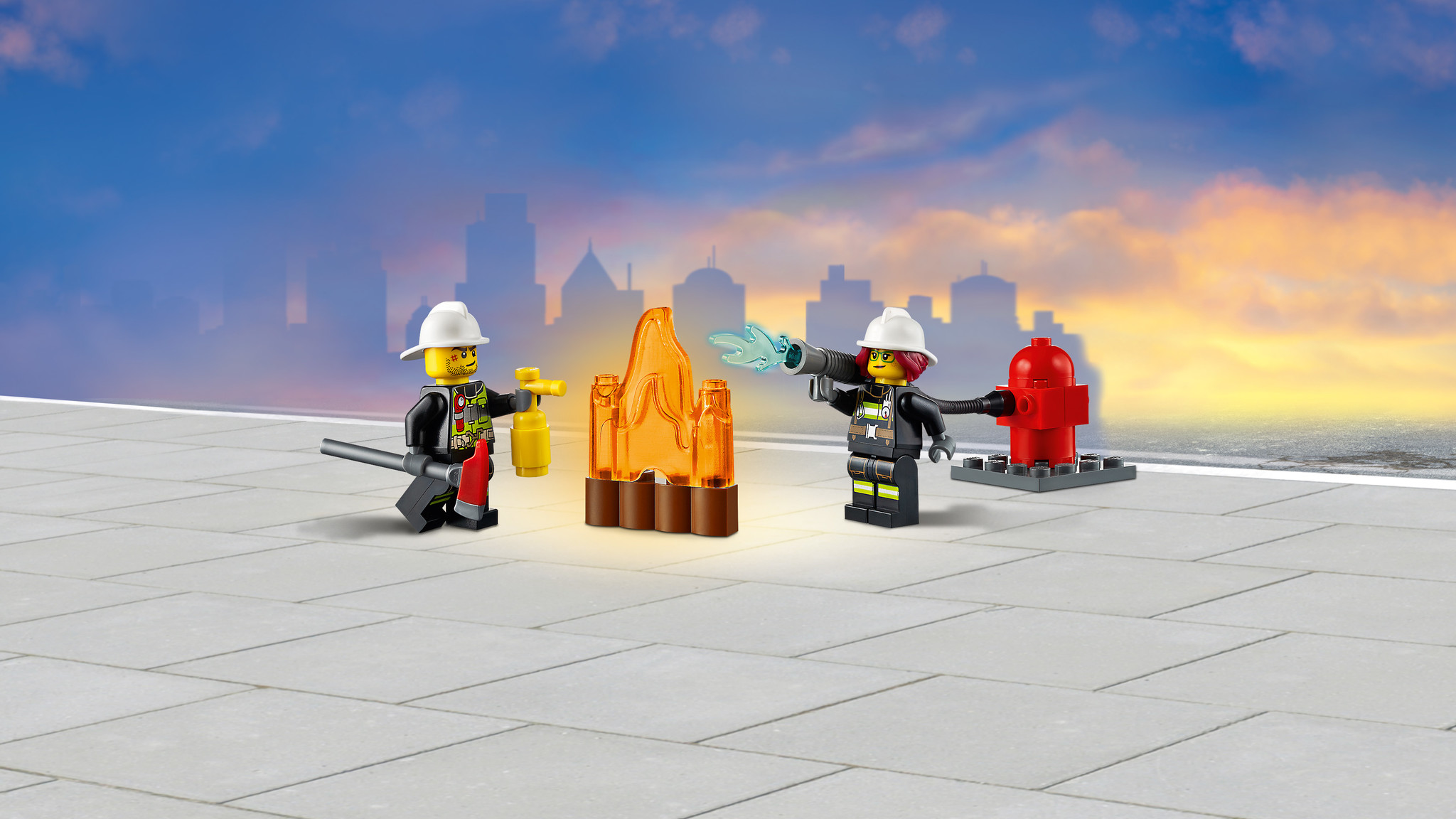 Oh nee! Er is brand en de vlammen reiken steeds hoger! Beleef samen met een brandweerman en heldin Freya McCloud uit de LEGO® City tv-serie avonturen boordevol brandblusactie. Stap in de geweldige brandweertruck en haast je naar de brand. Laad de appar