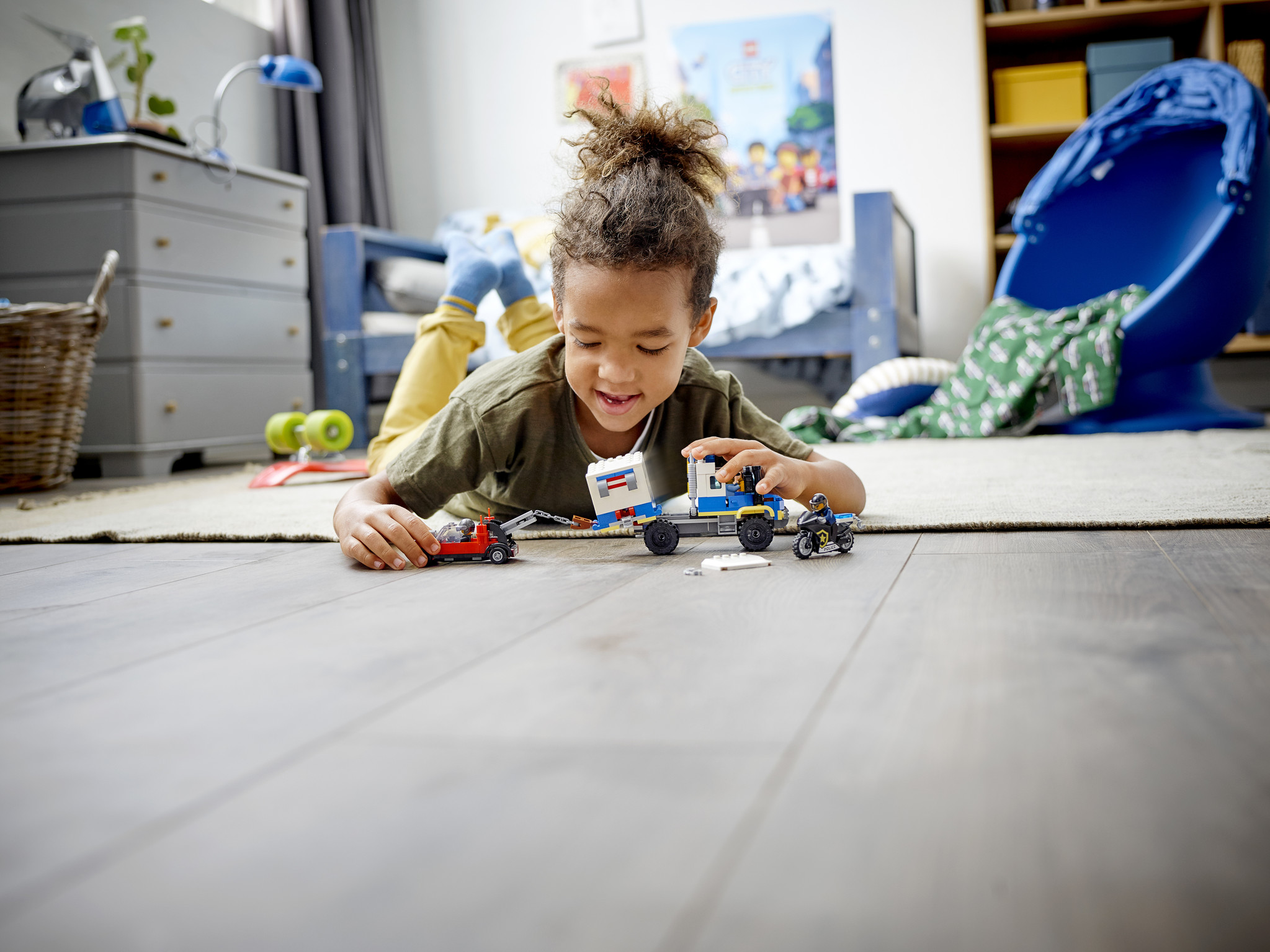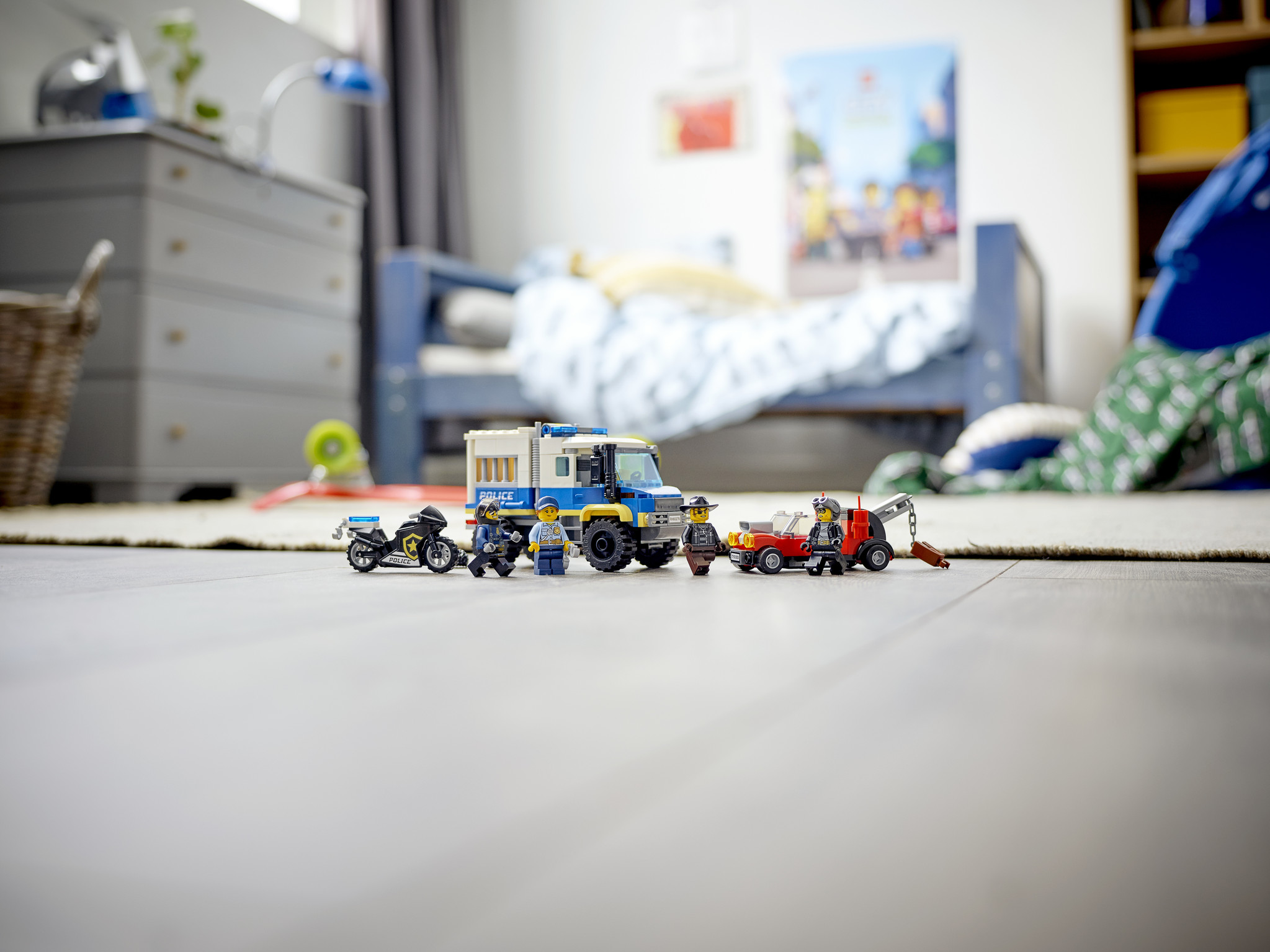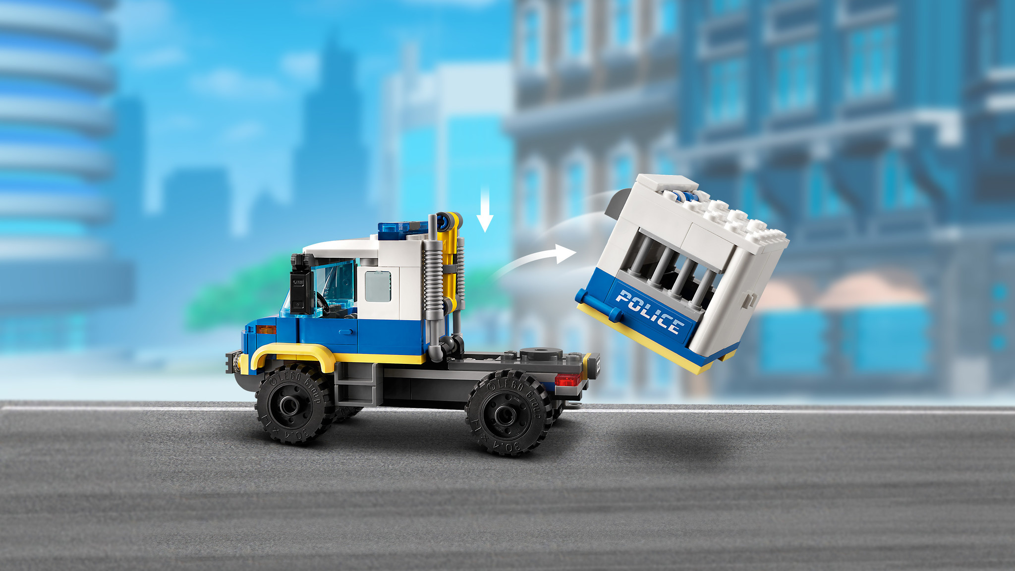 De LEGO® City politie vervoert de beruchte boef Snake Rattler in hun gevangenentransport, wanneer plotseling… BOEM! Door een ontploffing wordt de cel van de truck geblazen. Vervolgens sleept boef Clara de cel op hoge snelheid weg in haar opgevoerde s
