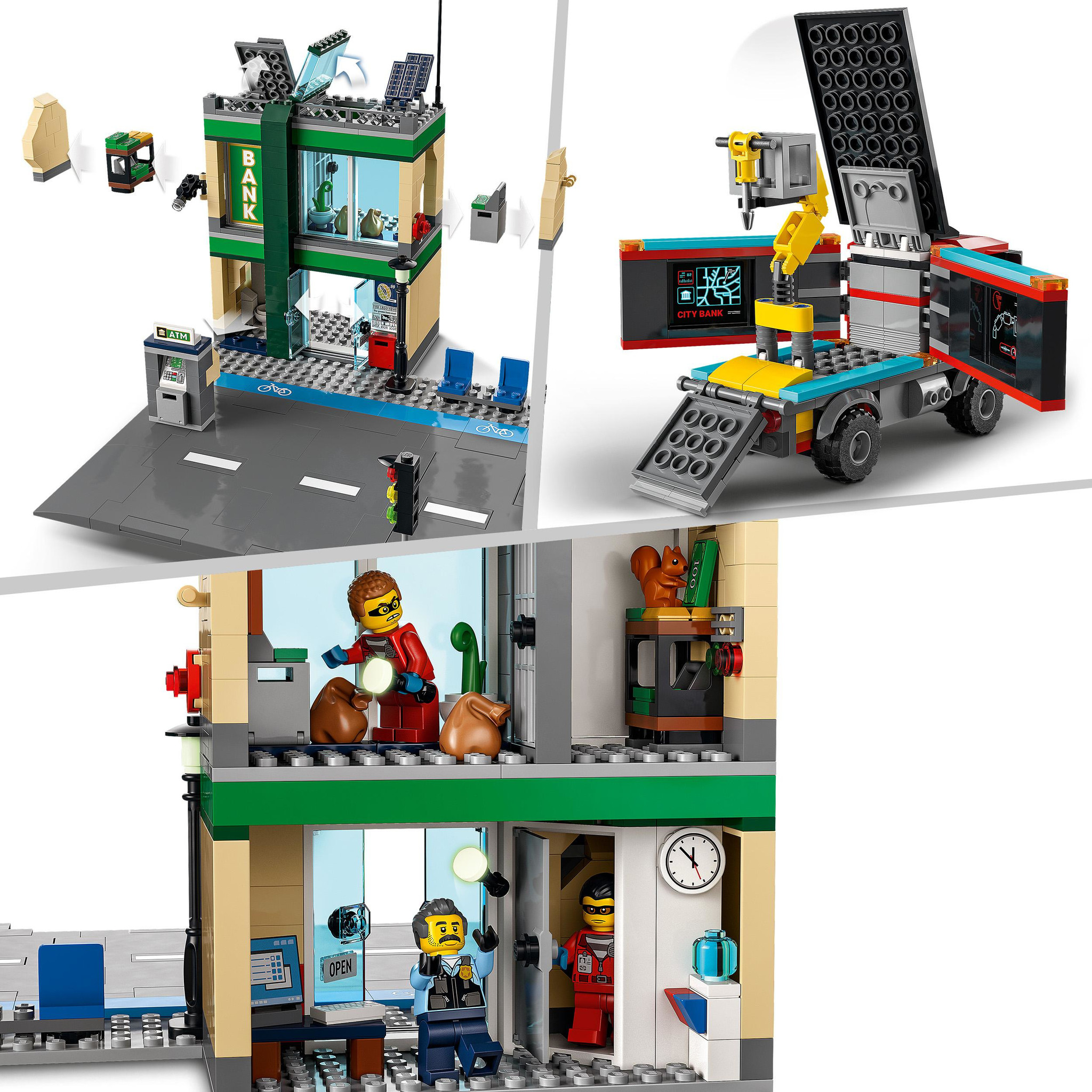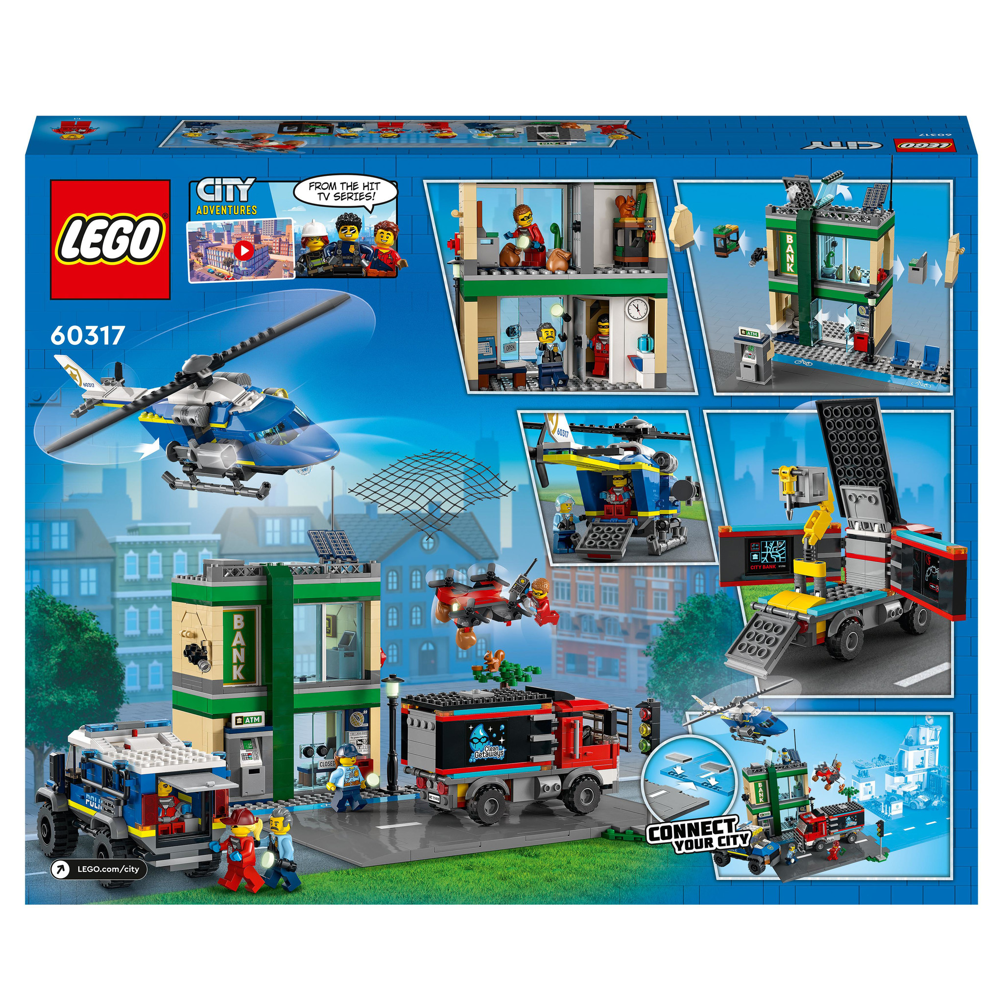 Er staat kinderen volop actie te wachten met deze LEGO City Politieachtervolging bij de bank (60317) speelset. Er is een bankgebouw vol leuke kenmerken, een uitklapbare schoonmaakwagen waarmee de boeven de bank overvallen, een politiehelikopter, een truck