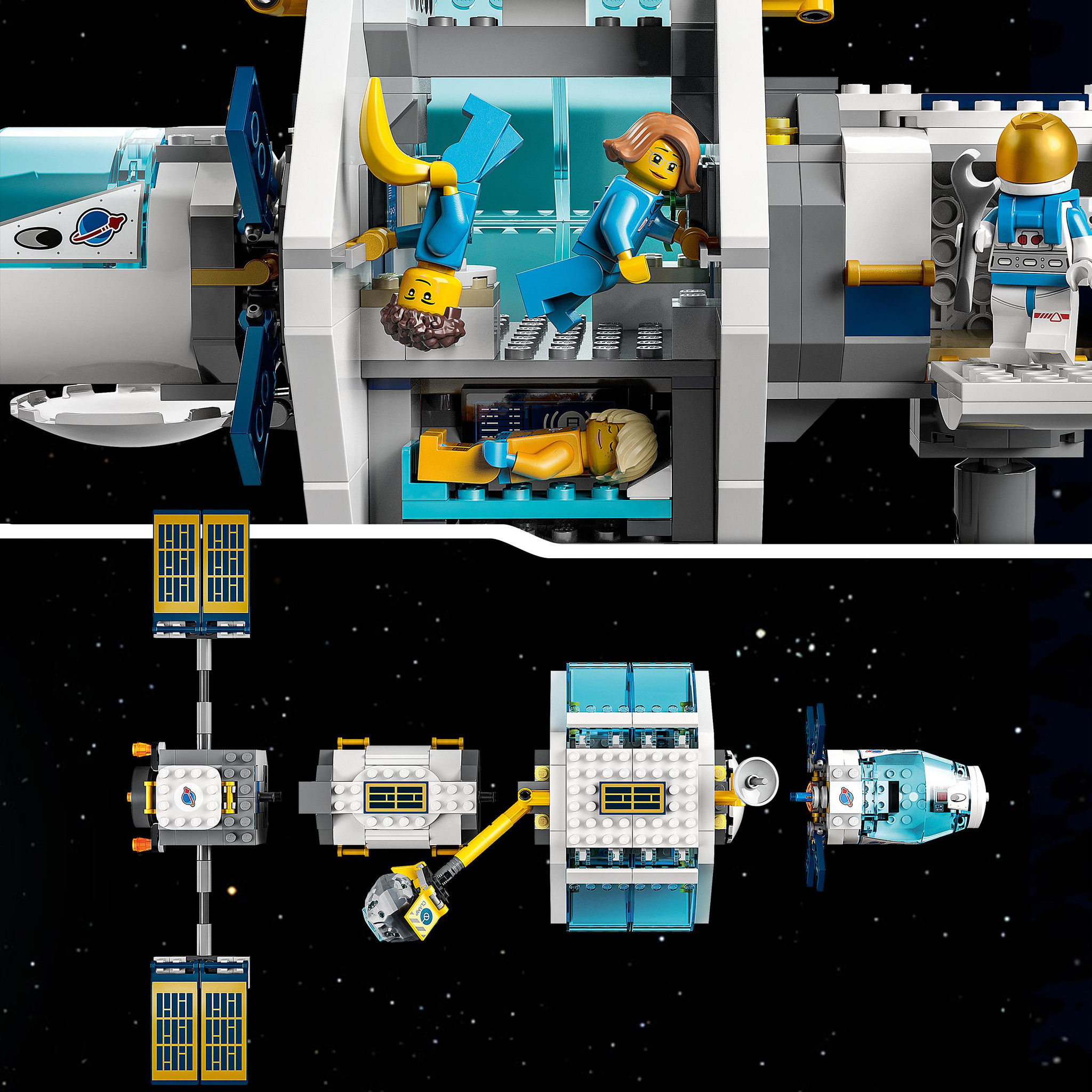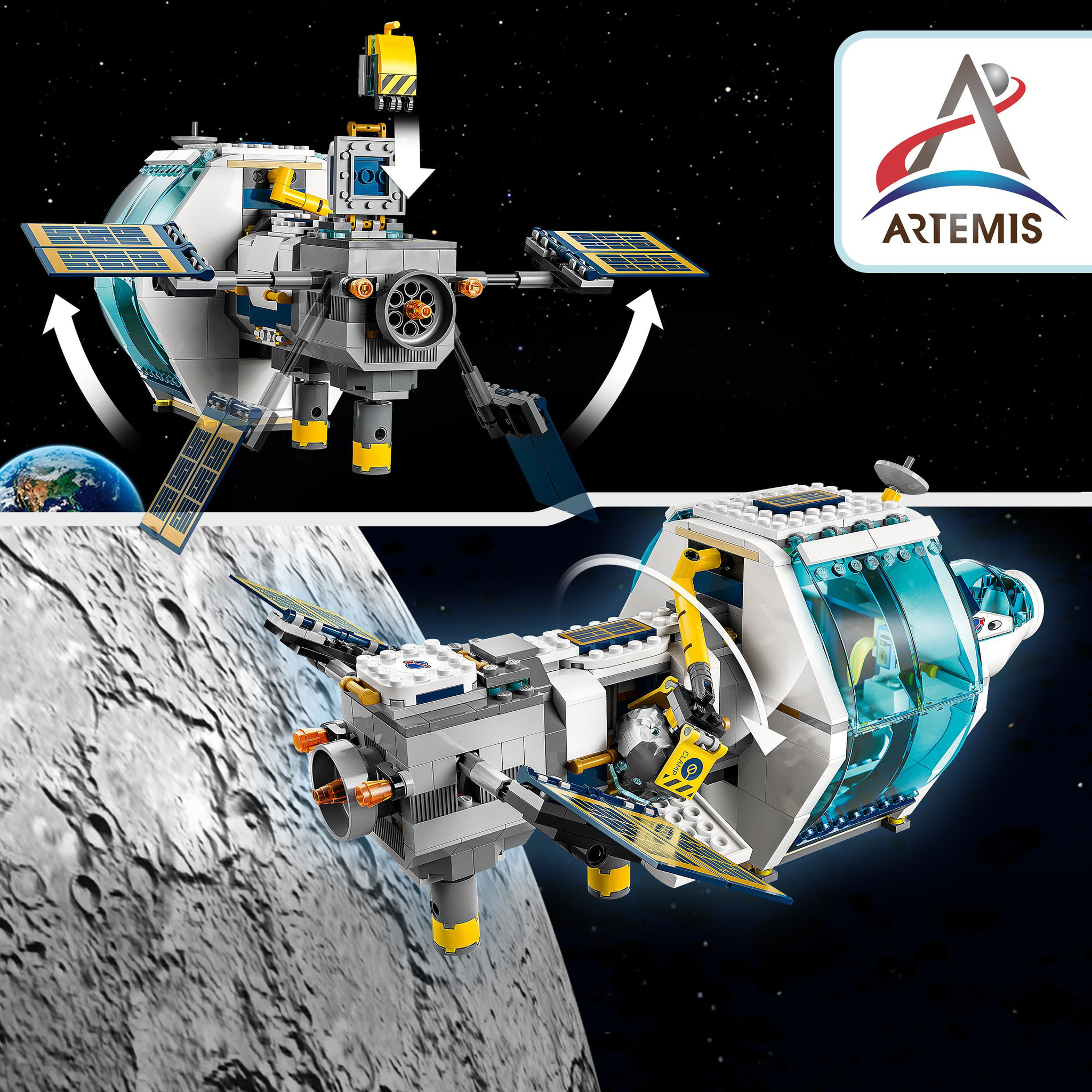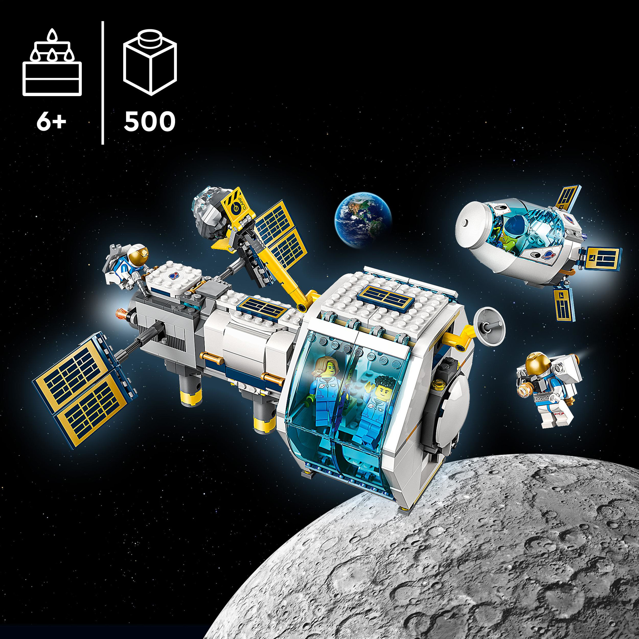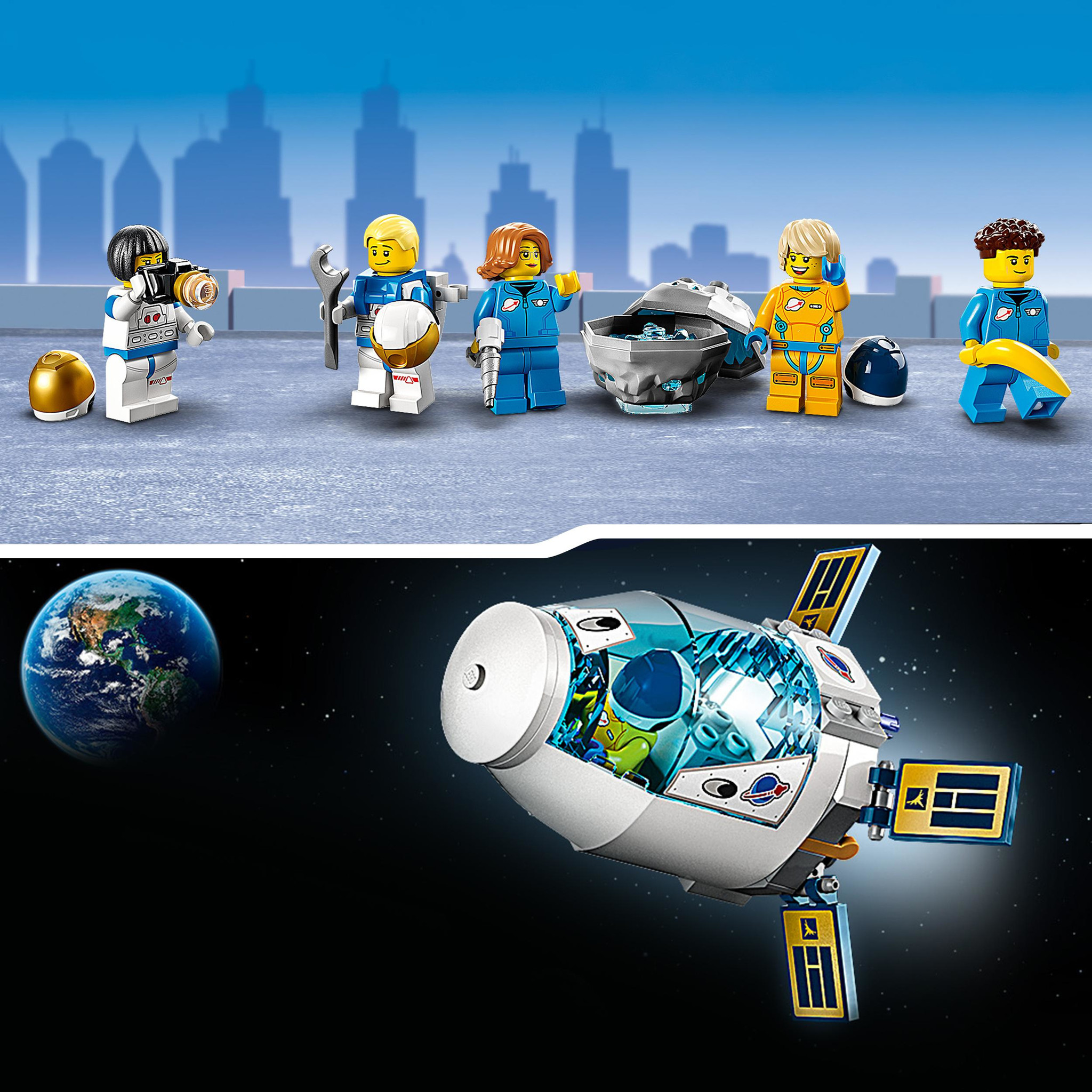 Stuur creatief spelen in een baan om de aarde met de LEGO City Ruimtestation op de maan (60349) set. Dit door NASA geïnspireerde ruimtevaartspeelgoed voor 6 jarigen wordt geleverd met veel realistische functies voor een fantasierijk spel, inclusief wetens