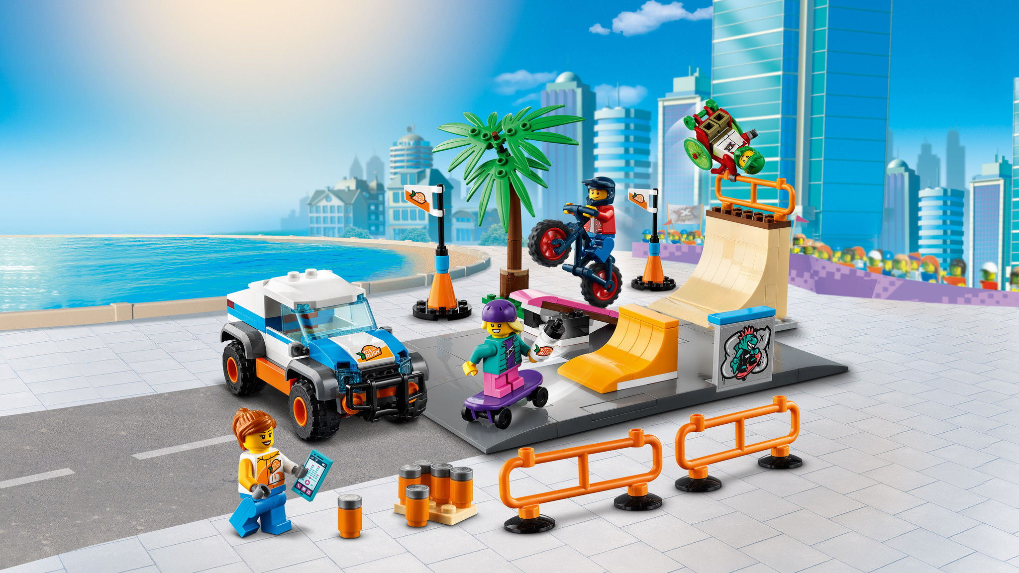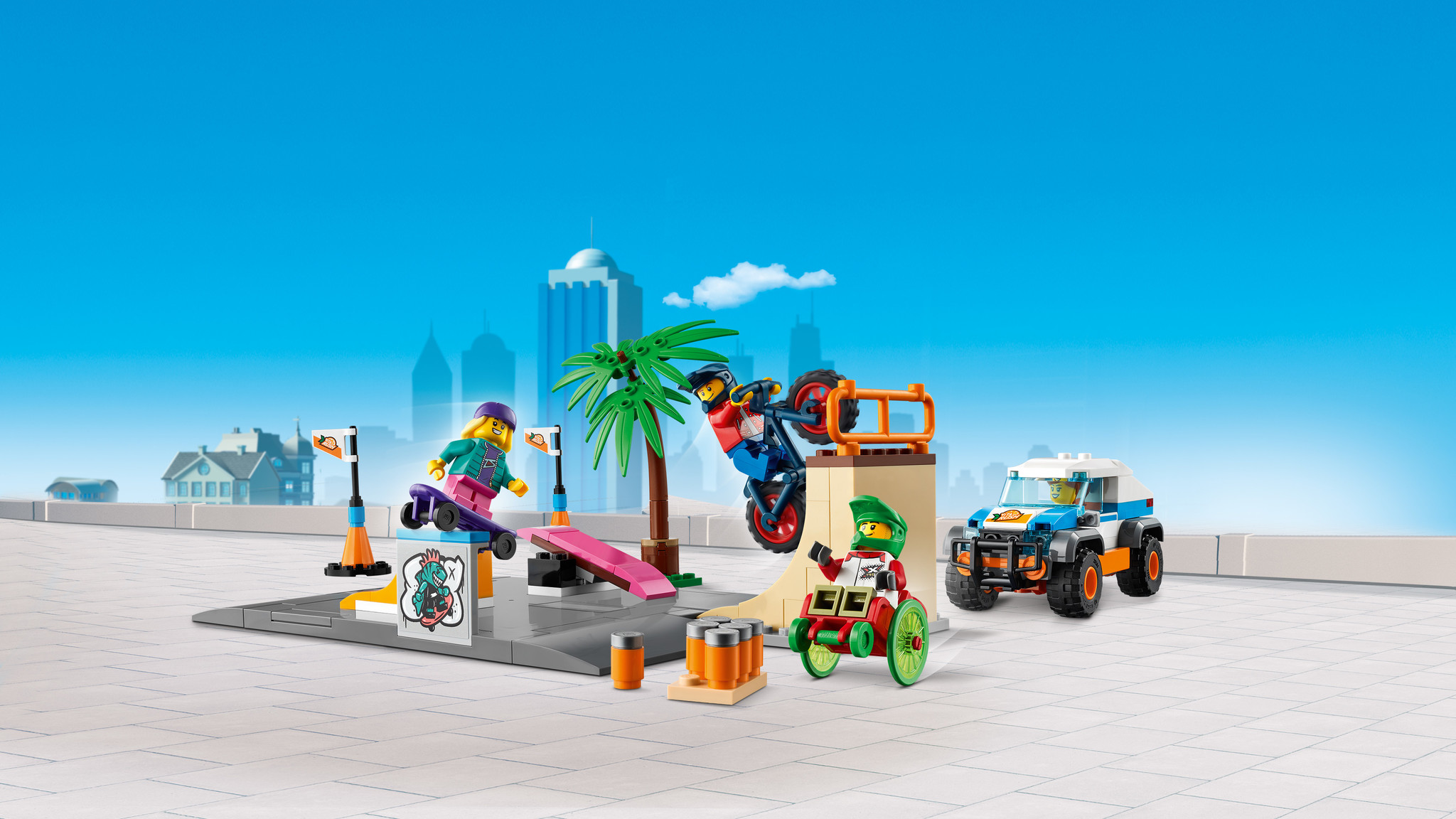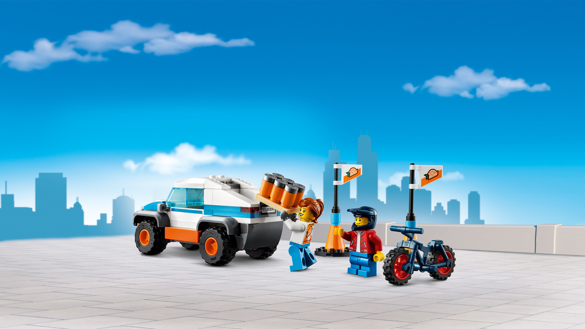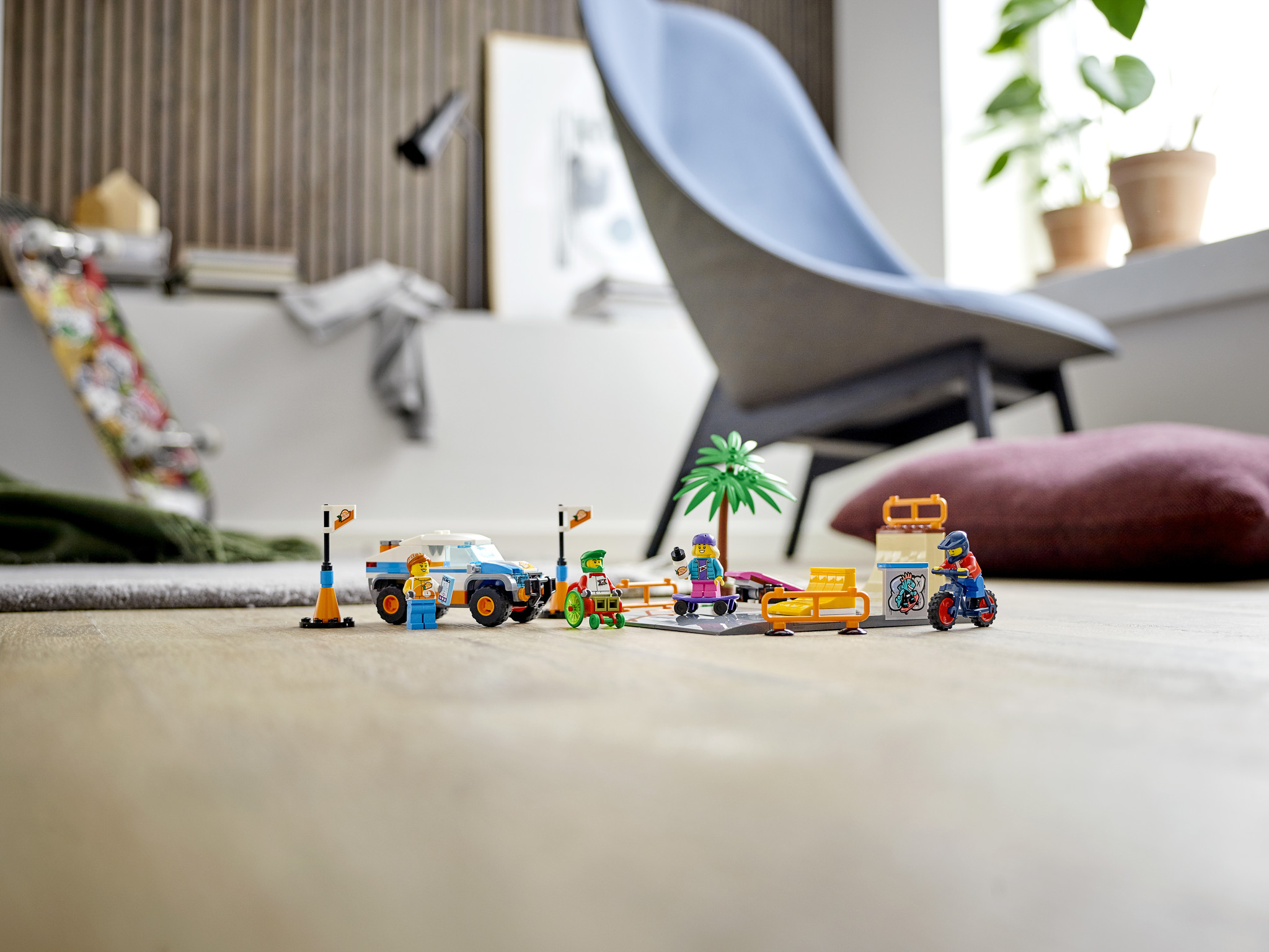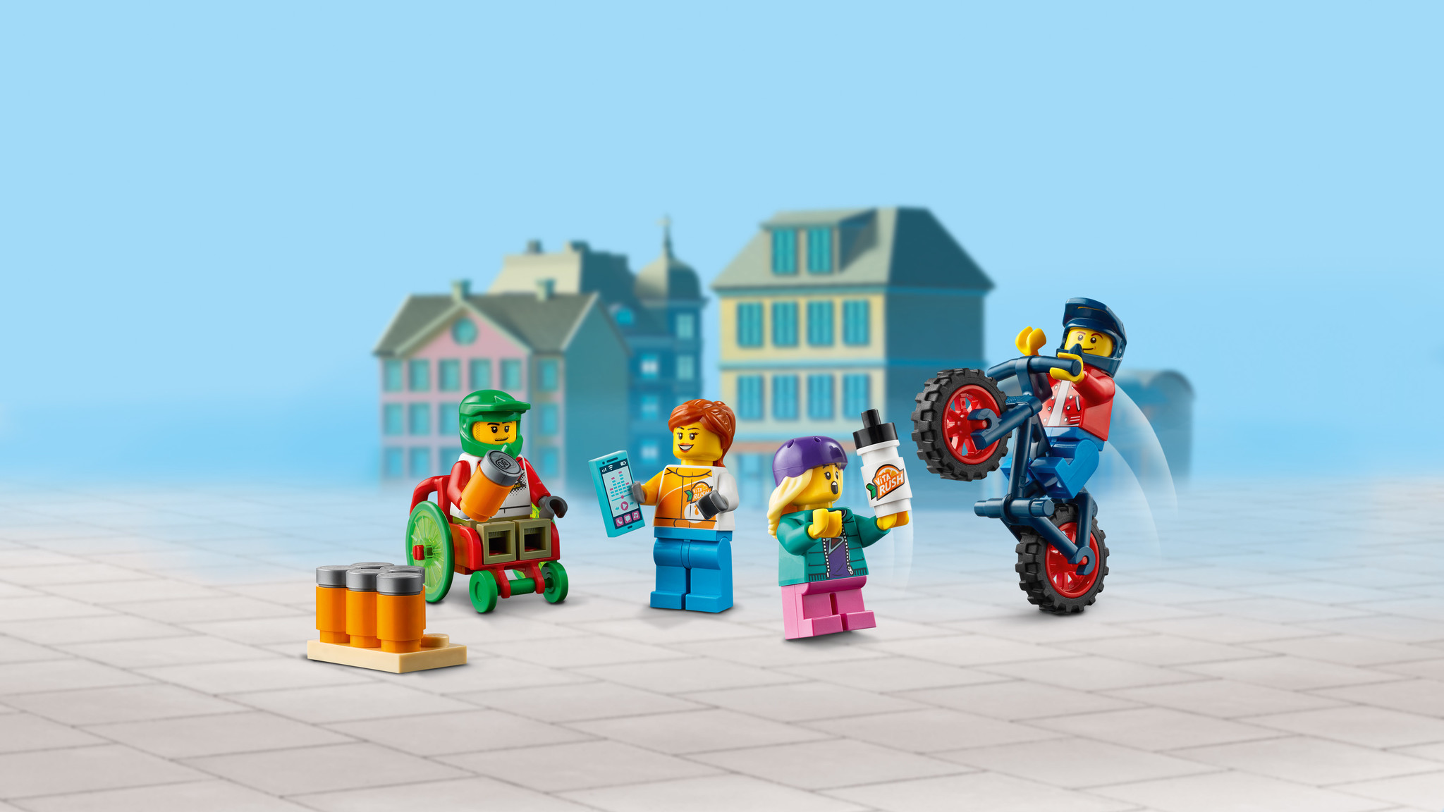 De spanning in LEGO® City neemt toe wanneer allerlei skaters, jong en oud, laten zien hoe goed ze zijn. De weg is afgezet voor het skate-evenement en een Vita Rush promotor deelt gratis blikjes frisdrank uit vanuit zijn pick-uptruck. Kijk hoe de rolstoela