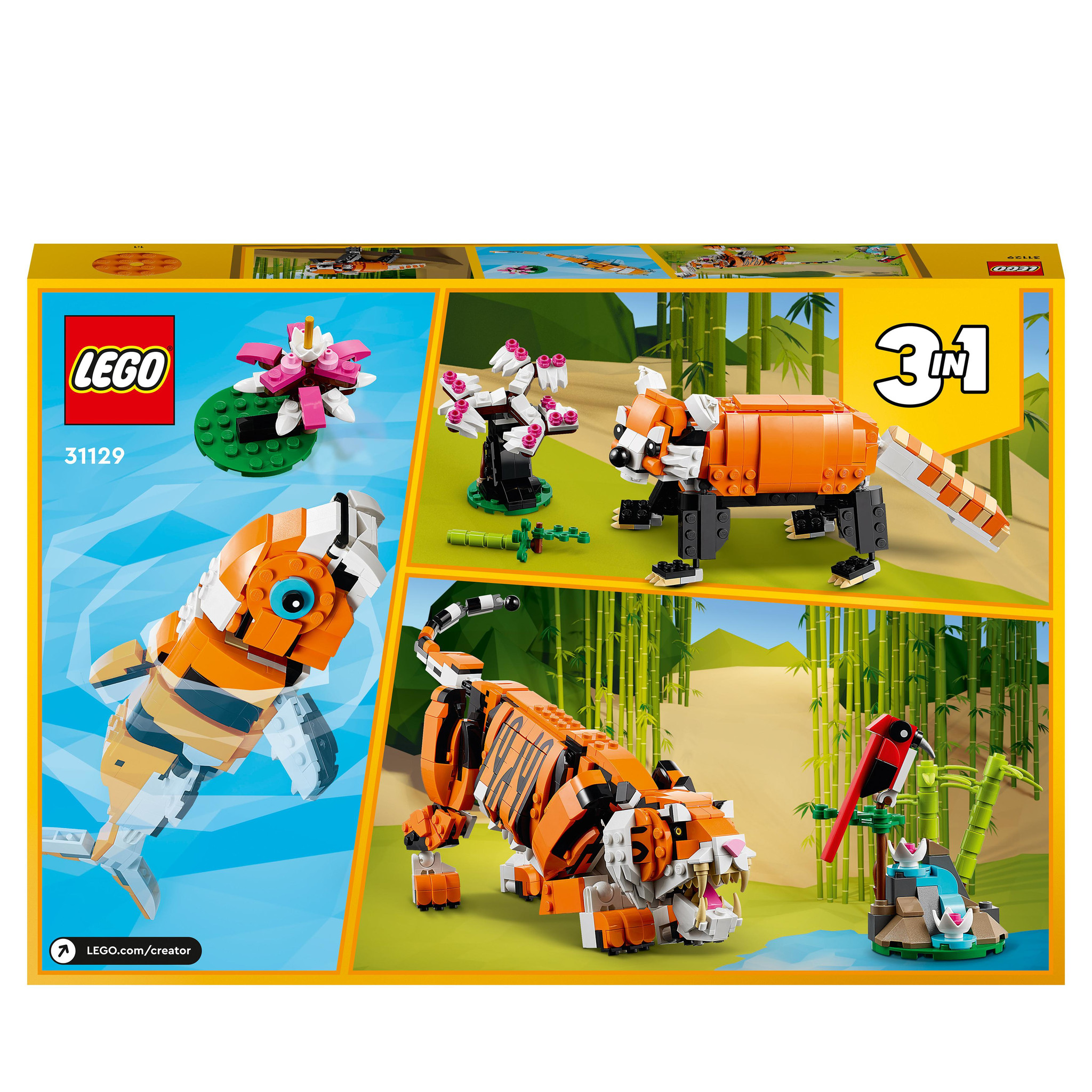 Echte dierenliefhebbers van 9 jaar en ouder zullen het geweldig vinden om leuke verhalen te bedenken met deze LEGO Creator 3in1 Grote tijger (31129) set. Met deze set kunnen kinderen uit stenen een model van een tijger bouwen met beweegbare staart, poten,