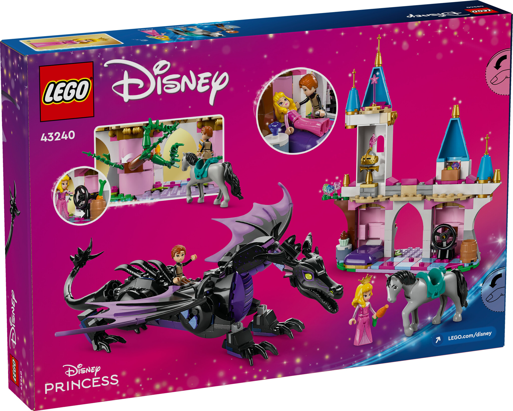 Kinderen van 7 jaar en ouder en fans van Disney’s Doornroosje beleven leuke avonturen met deze LEGO® ǀ Disney Princess Maleficent in drakenvorm (43240) bouw- en speelset. Dit Disney cadeau bestaat uit een bruggedeelte met torens en ruimte voor een bed, ee