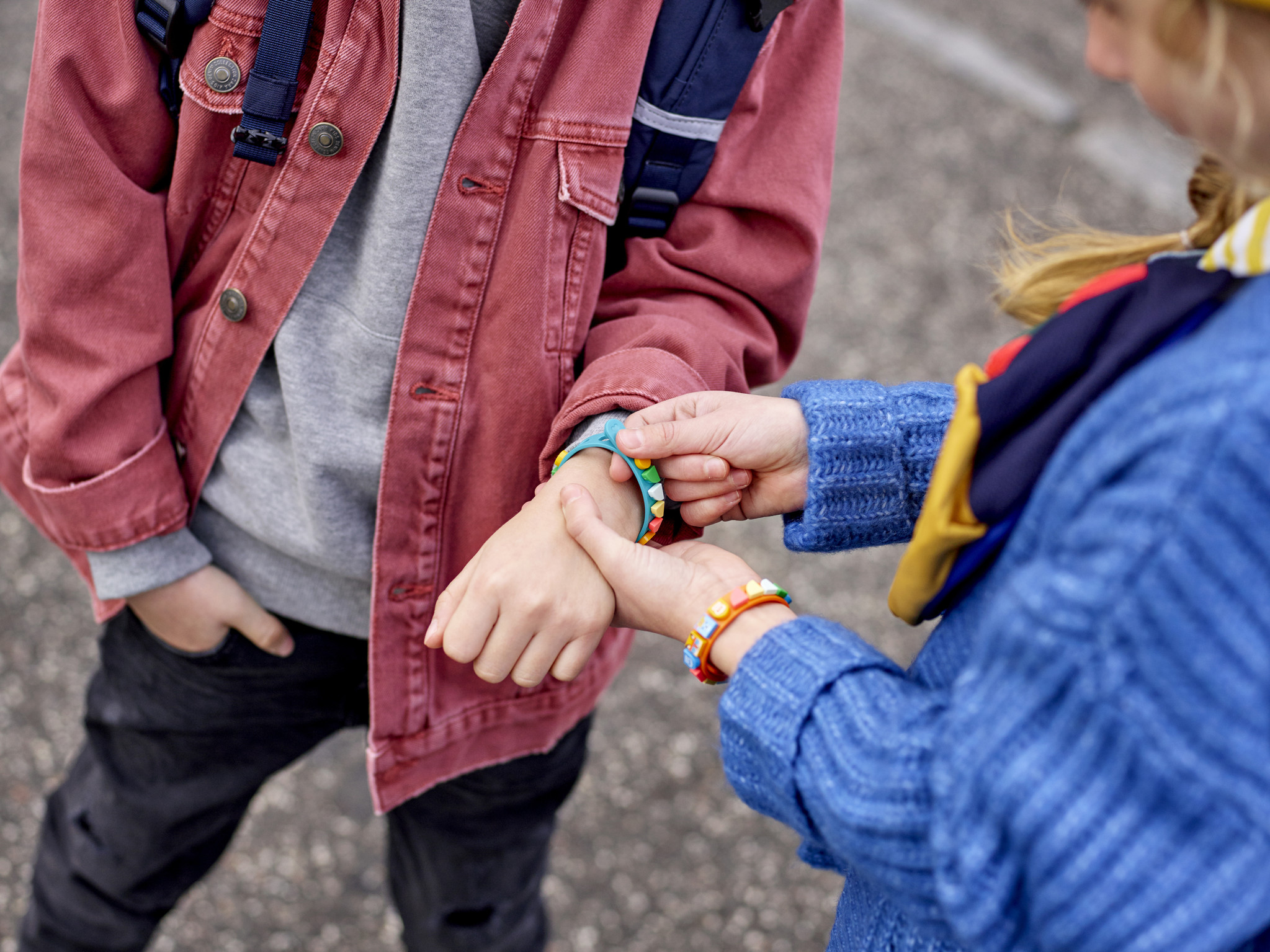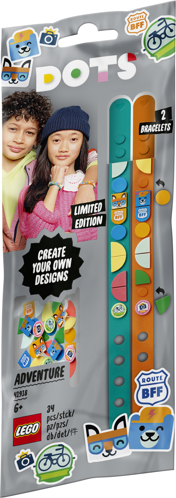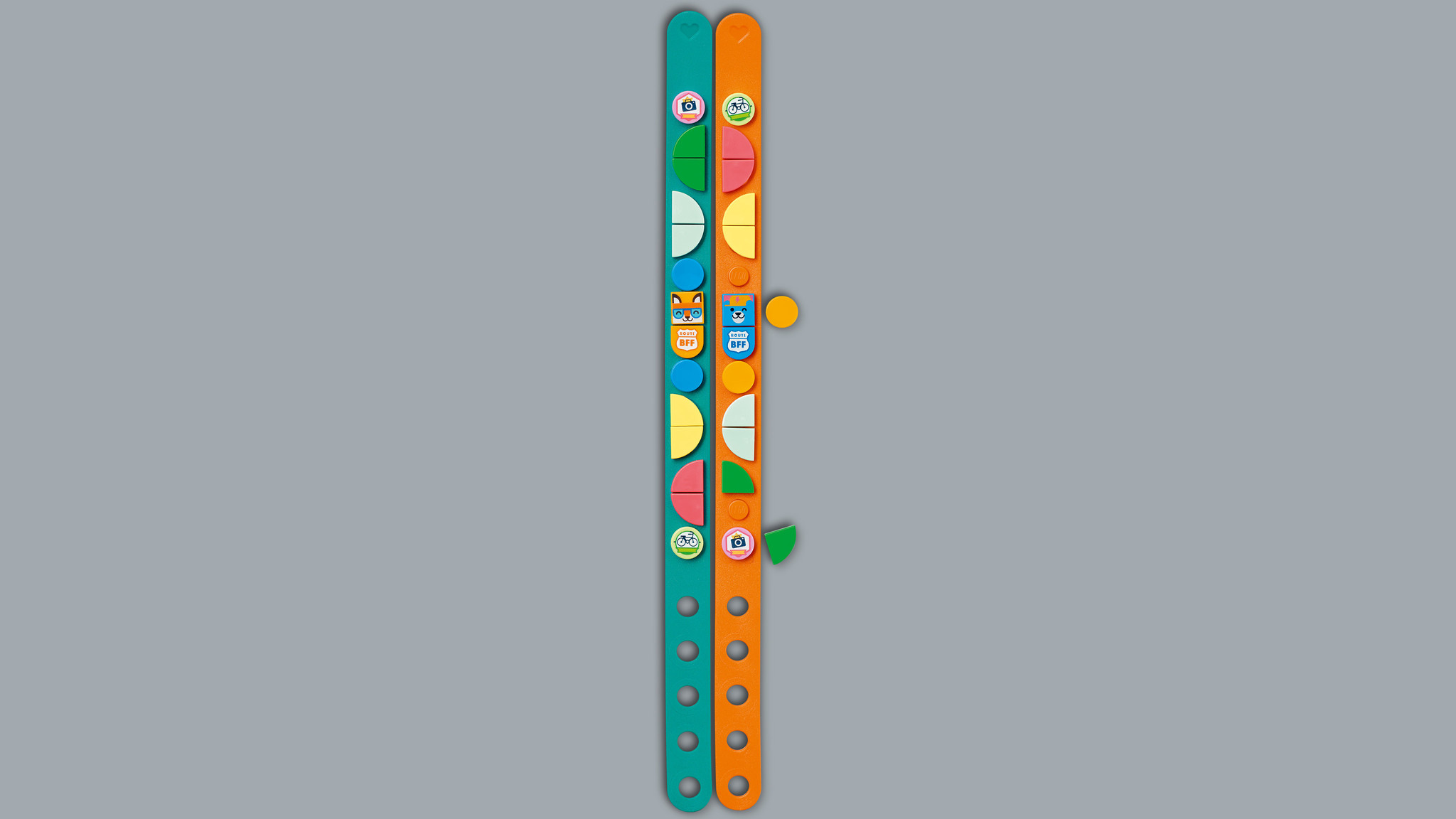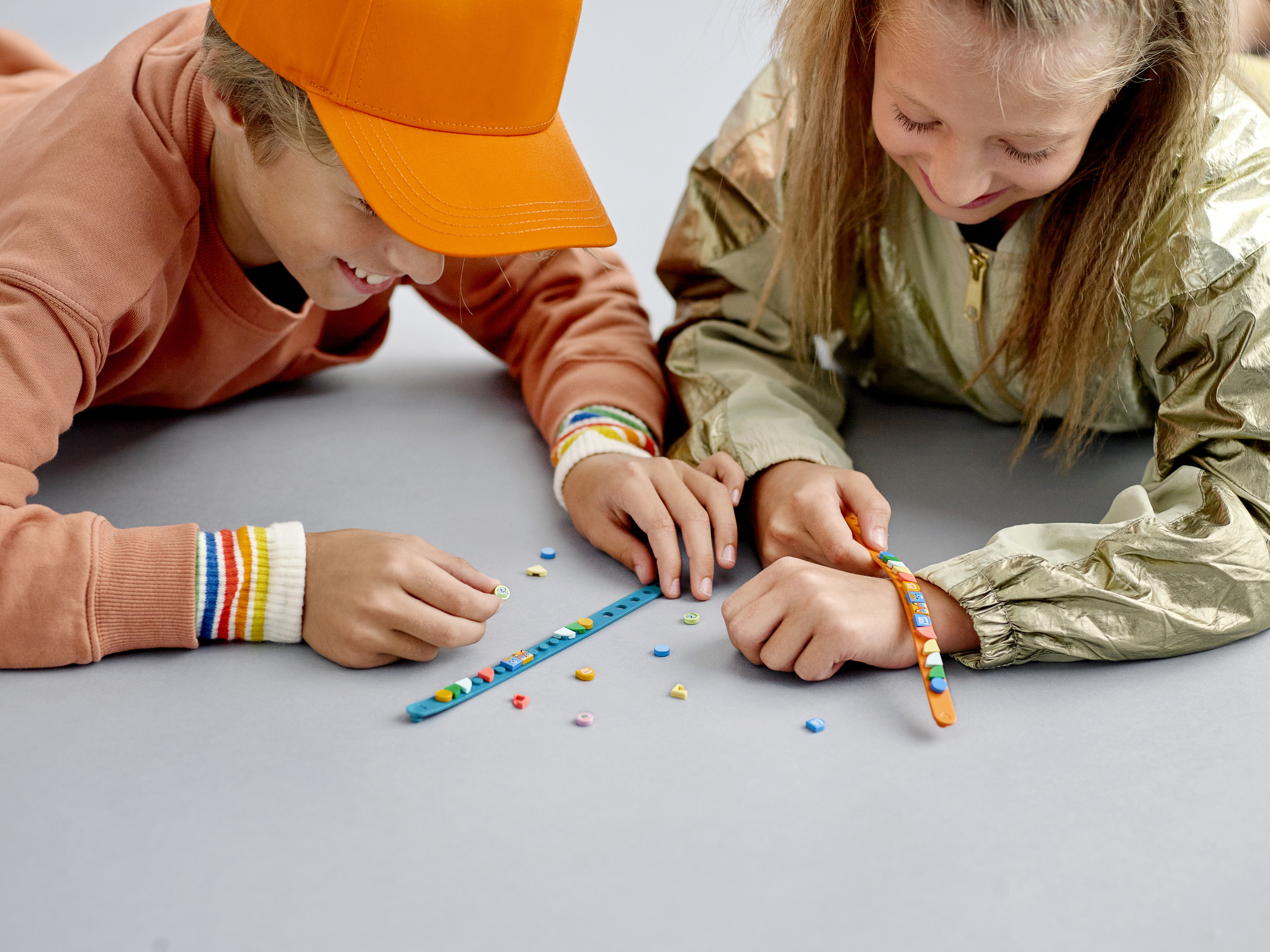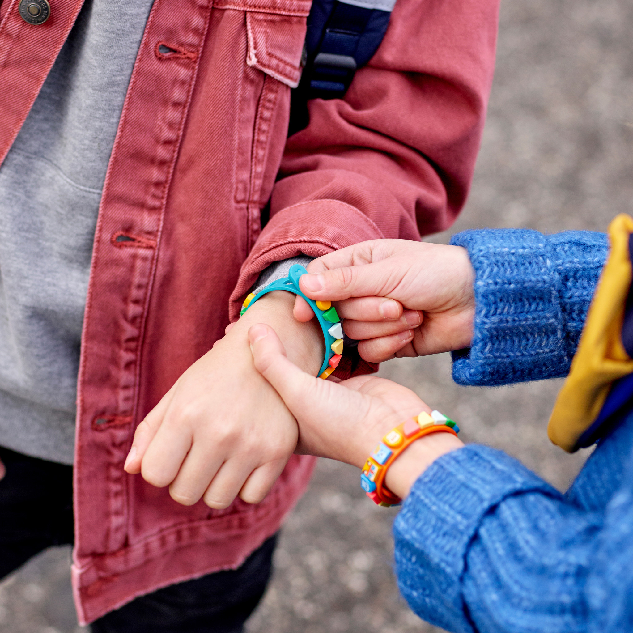 Draag deze coole armbanden en ga samen met je beste vriend of vriendin op avontuur! Open het zakje, leg de armbanden met één rij noppen plat neer en klik de funky kleurrijke tegels erop. Kijk op de verpakking voor inspiratie of maak je eigen ontwerpen. Vo