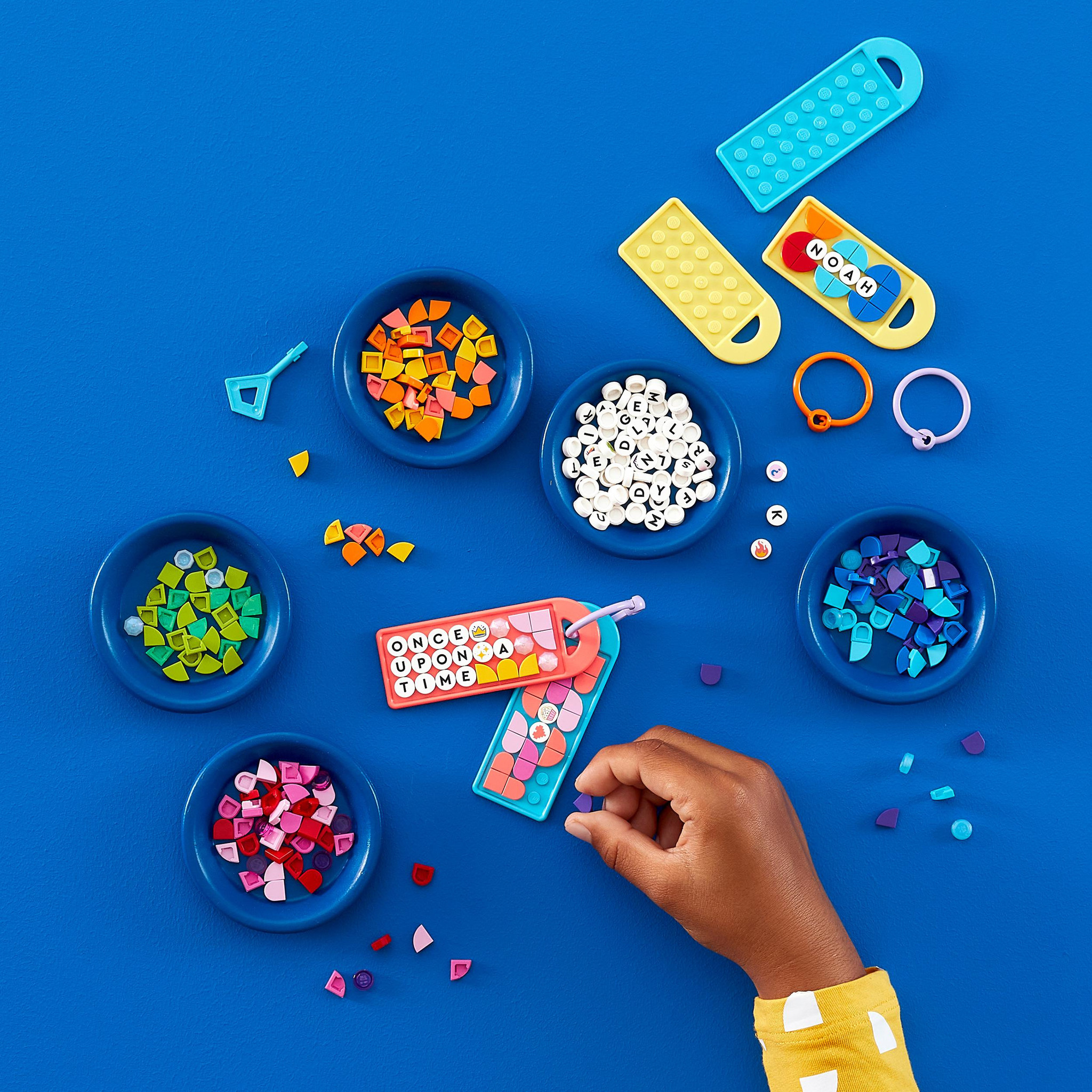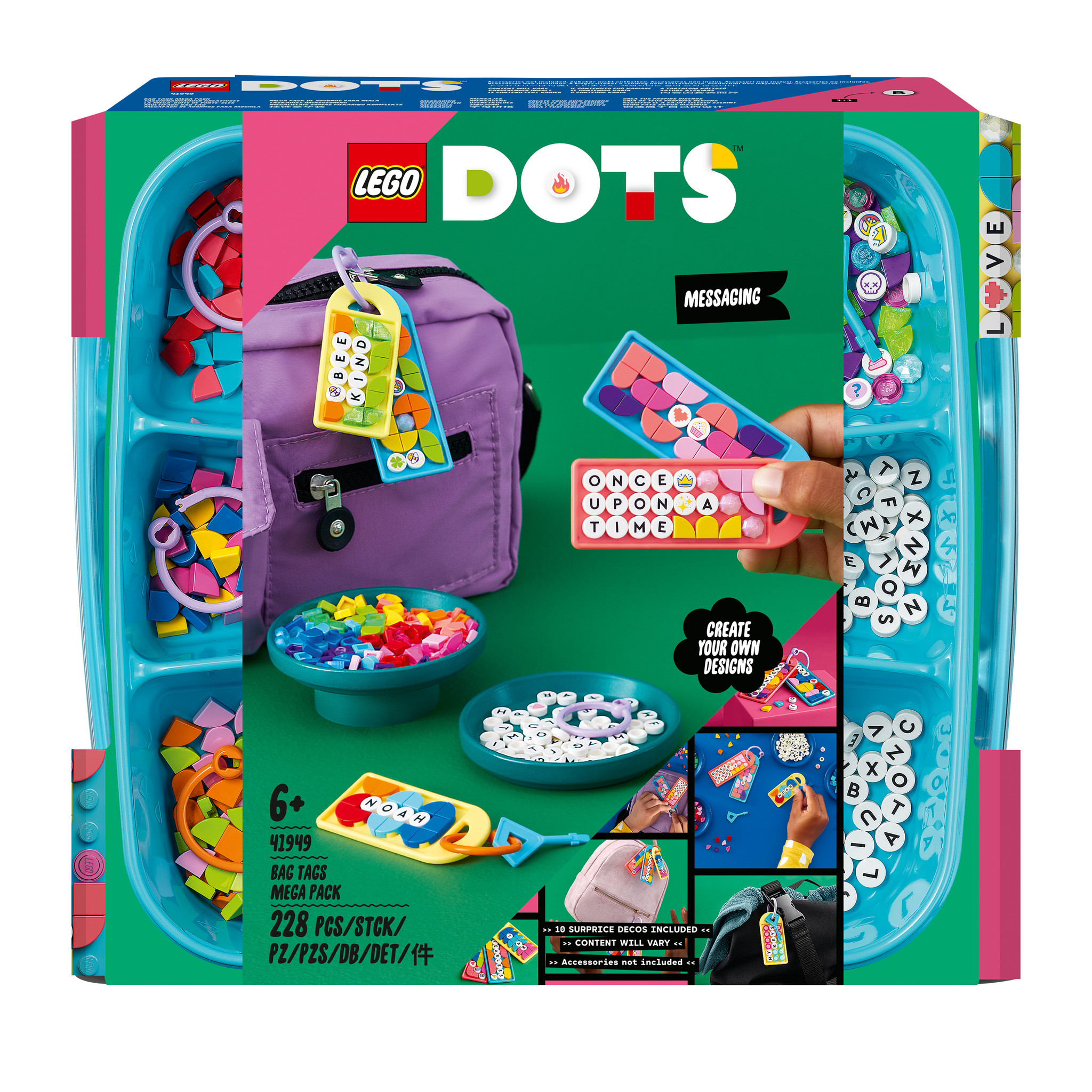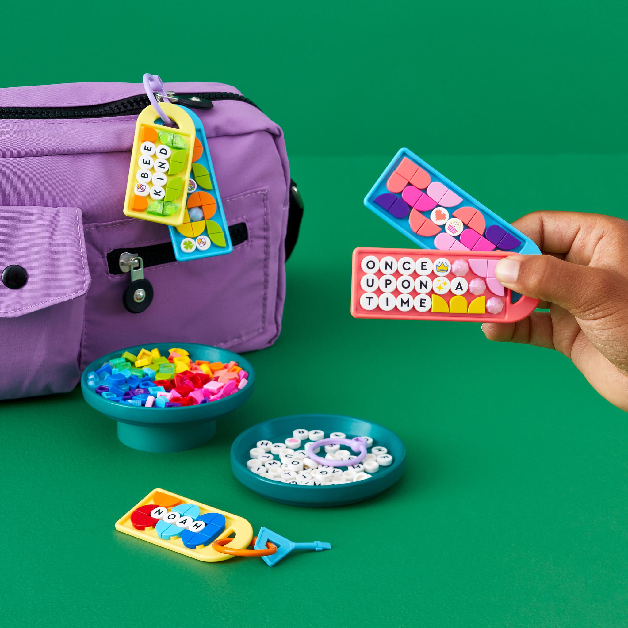 Op zoek naar een leuke knutselcadeauset voor kinderen? Kijk dan eens naar de LEGO DOTS Taslabels megapack – berichten knutselset voor kinderen vanaf 6 jaar. De set bestaat uit 5 platte sleutelhanger-stijl taslabels voor schooltassen met ophangringen di