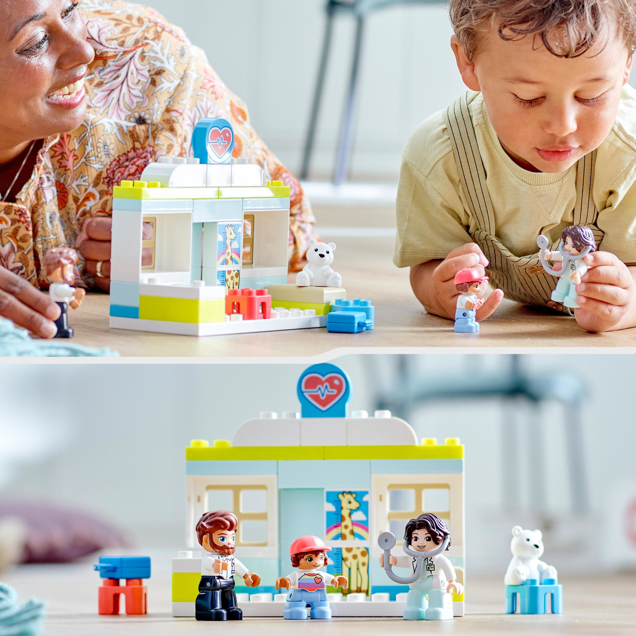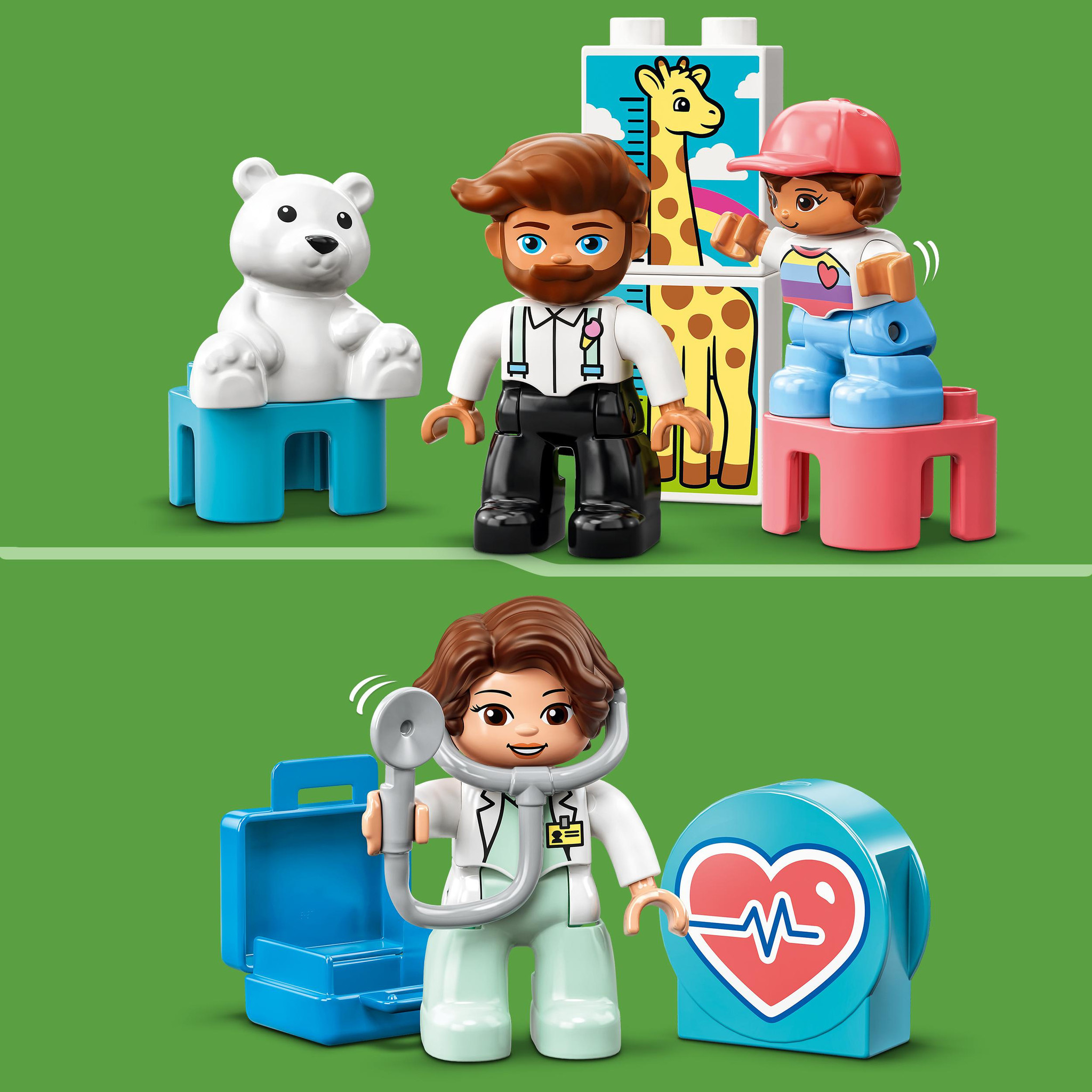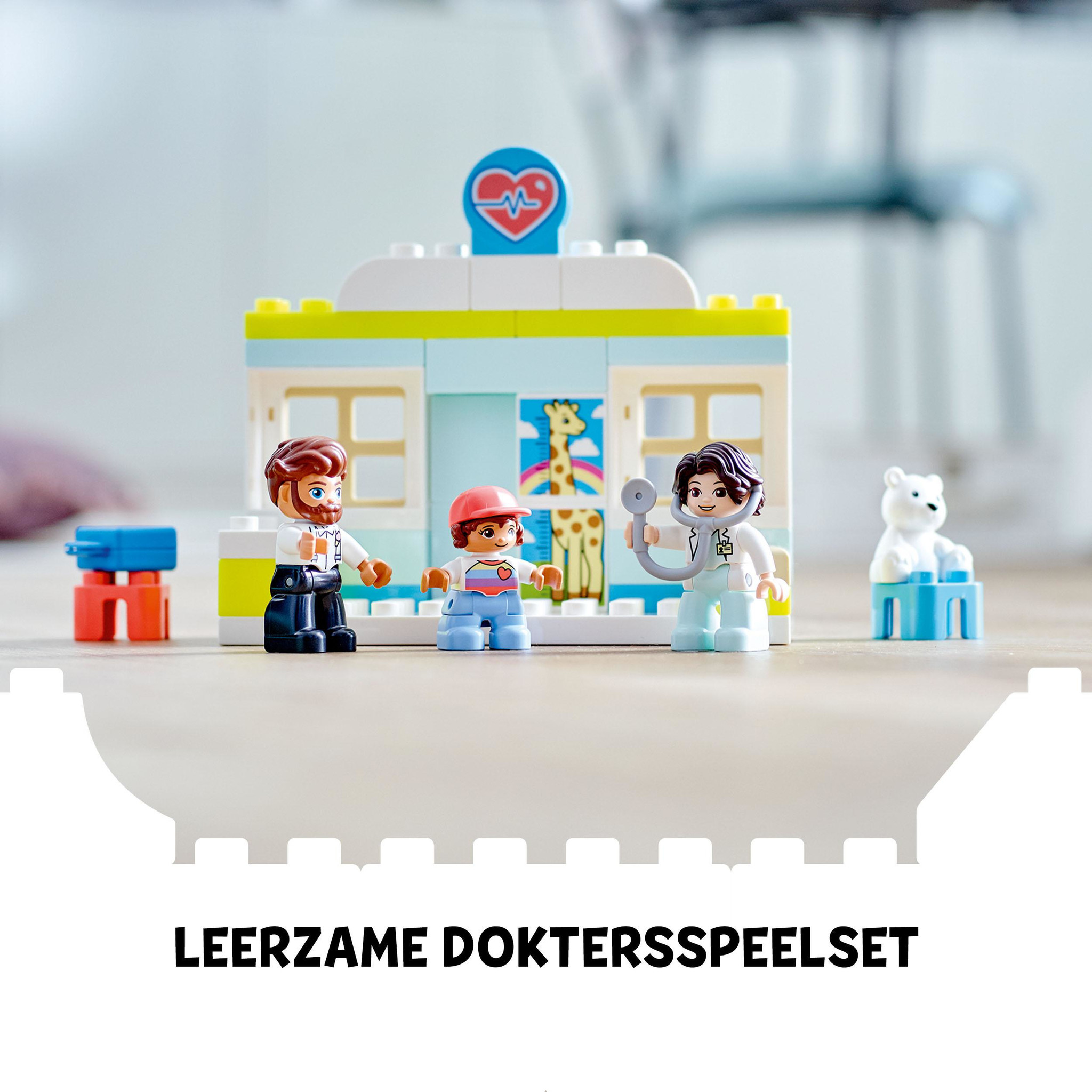 Kleine dokters en verpleegsters zullen dol zijn op de leuke activiteiten en vriendelijke arts die voorkomen in LEGO DUPLO Bij de dokter (10968) vroegtijdig leerspeelgoed voor peuters vanaf 2 jaar oud. Deze veelzijdige speelset is ook een uitstekende manie