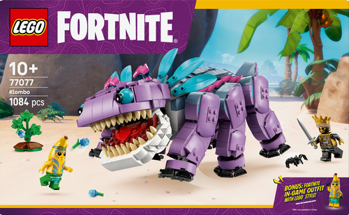 Klombo is een groot wezen uit de LEGO Fortnite videogame en met deze bouwset kunnen jongens en meisjes hem nabouwen met LEGO stenen. De Fortnite figuur heeft coole details waaronder beweegbare poten, een bek die open kan en een draaibare staart. De set bevat ook een kleine Klomberry struik met afneembare Klomberries, zodat kinderen Klombo kunnen plagen voordat ze hem Klomberries voeren om vrienden te worden. Inclusief minifiguren van Island Adventure Peely en Oro, die op de rug van Klombo kunnen worden bevestigd voor fantasierijke rollenspellen.