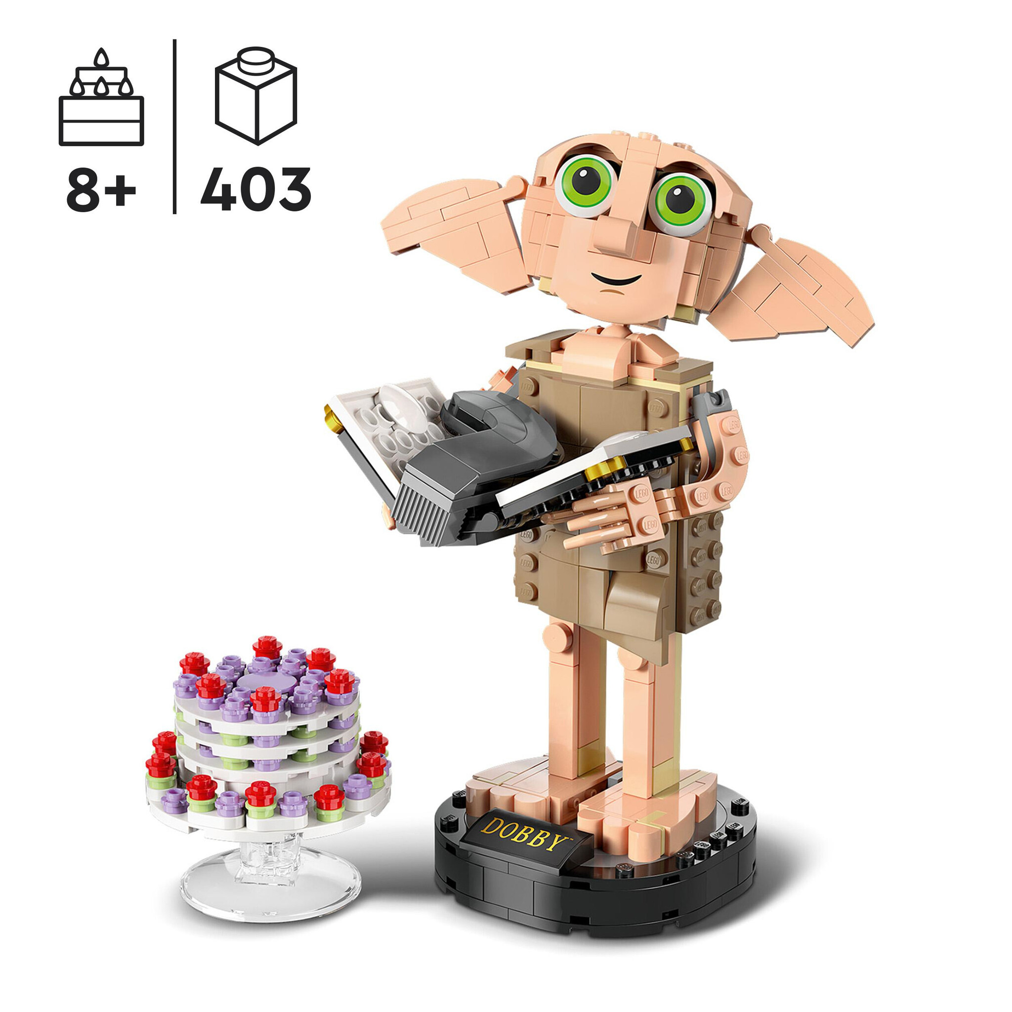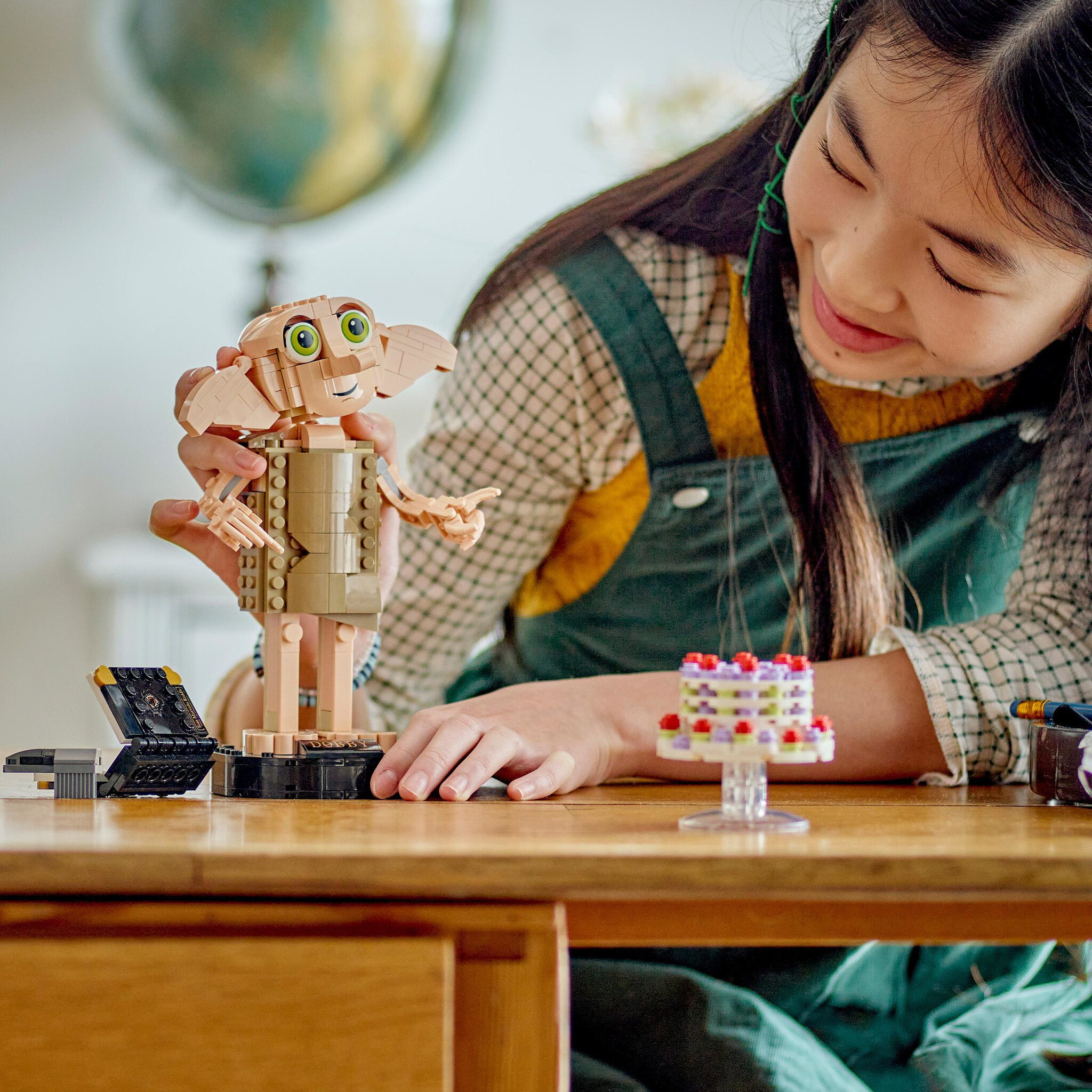 Verras Harry Potter fans met het allereerste LEGO model van Dobby de huis-elf. De direct herkenbare figuur heeft een beweegbaar hoofd en verstelbare armen en vingers zodat Dobby de meegeleverde accessoires kan vasthouden. Er is een gedetailleerd bouwbaar