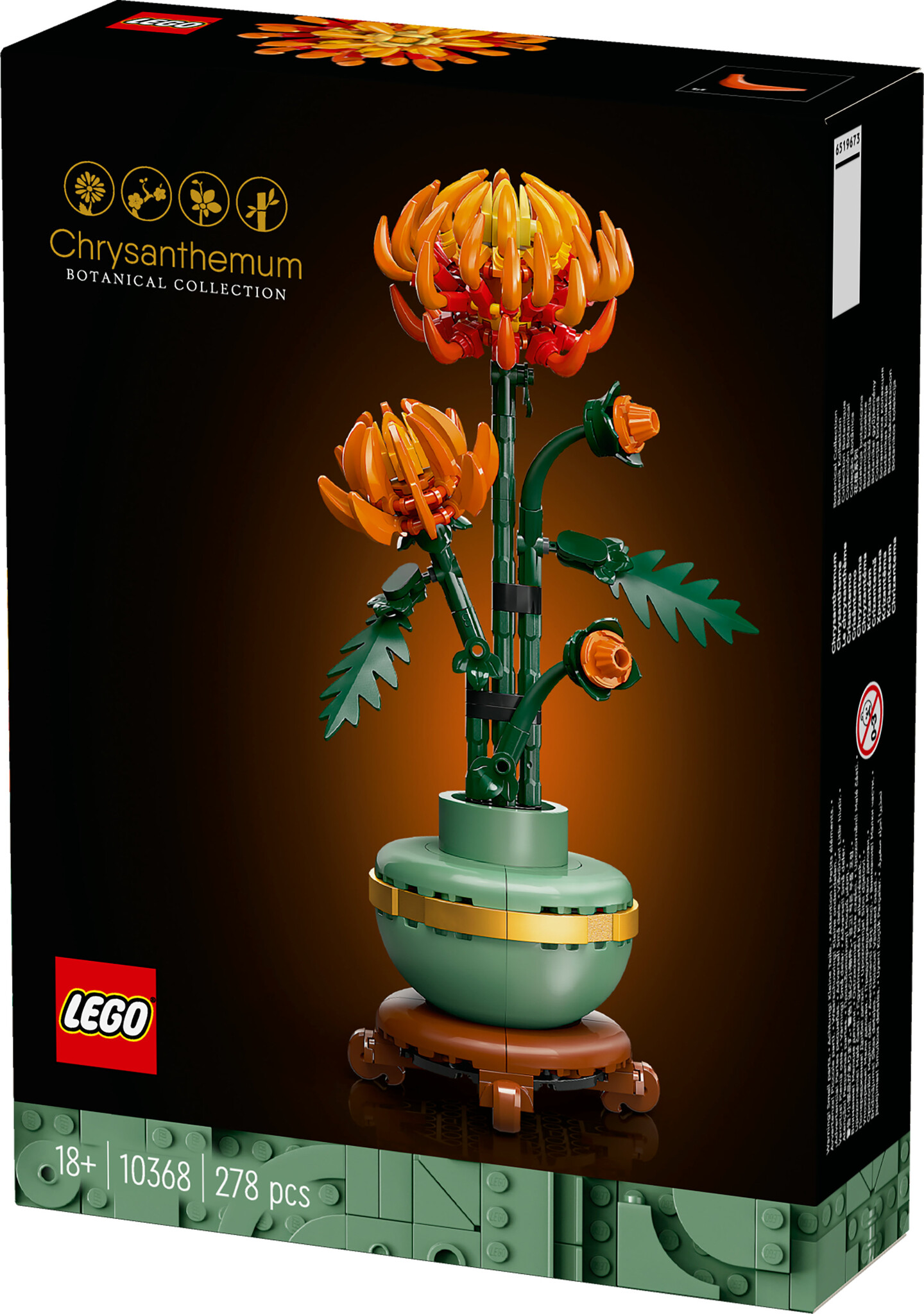 Neem wat tijd voor jezelf met deze LEGO® Icons Chrysant bouwset (10368). De chrysant is een veelgebruikt motief in de traditionele kunst en vertegenwoordigt de herfst in het klassieke kwartet van prachtige planten dat bekend staat als de Vier Edellieden.