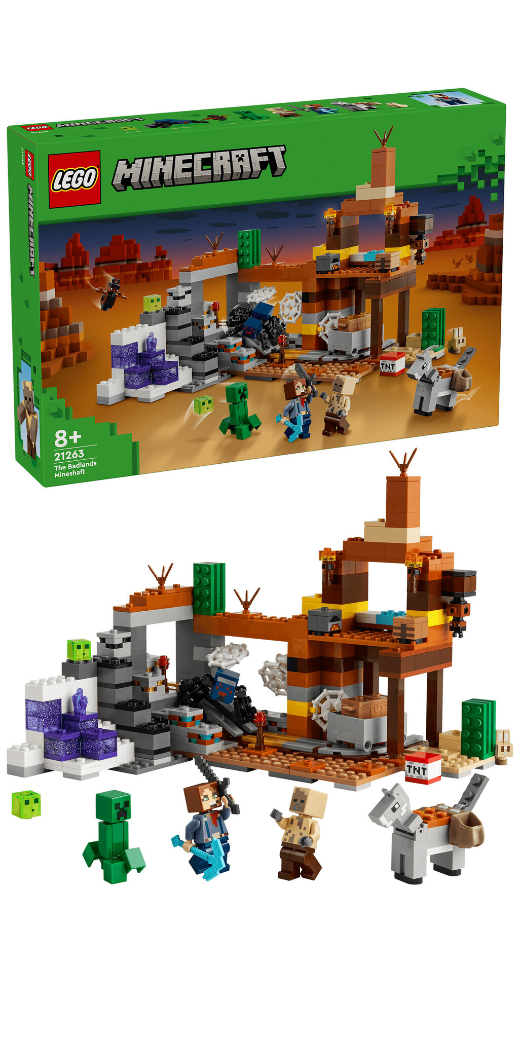 De woestenijmijnschacht (21263) is een praktische gamingset met mijnbouwthema voor Minecraft® spelers. Dit veelzijdige bouwspeelgoed voor kinderen bevat populaire Minecraft mobs en is een geweldig cadeau voor jongens en meisjes vanaf 8 jaar die dol zijn o
