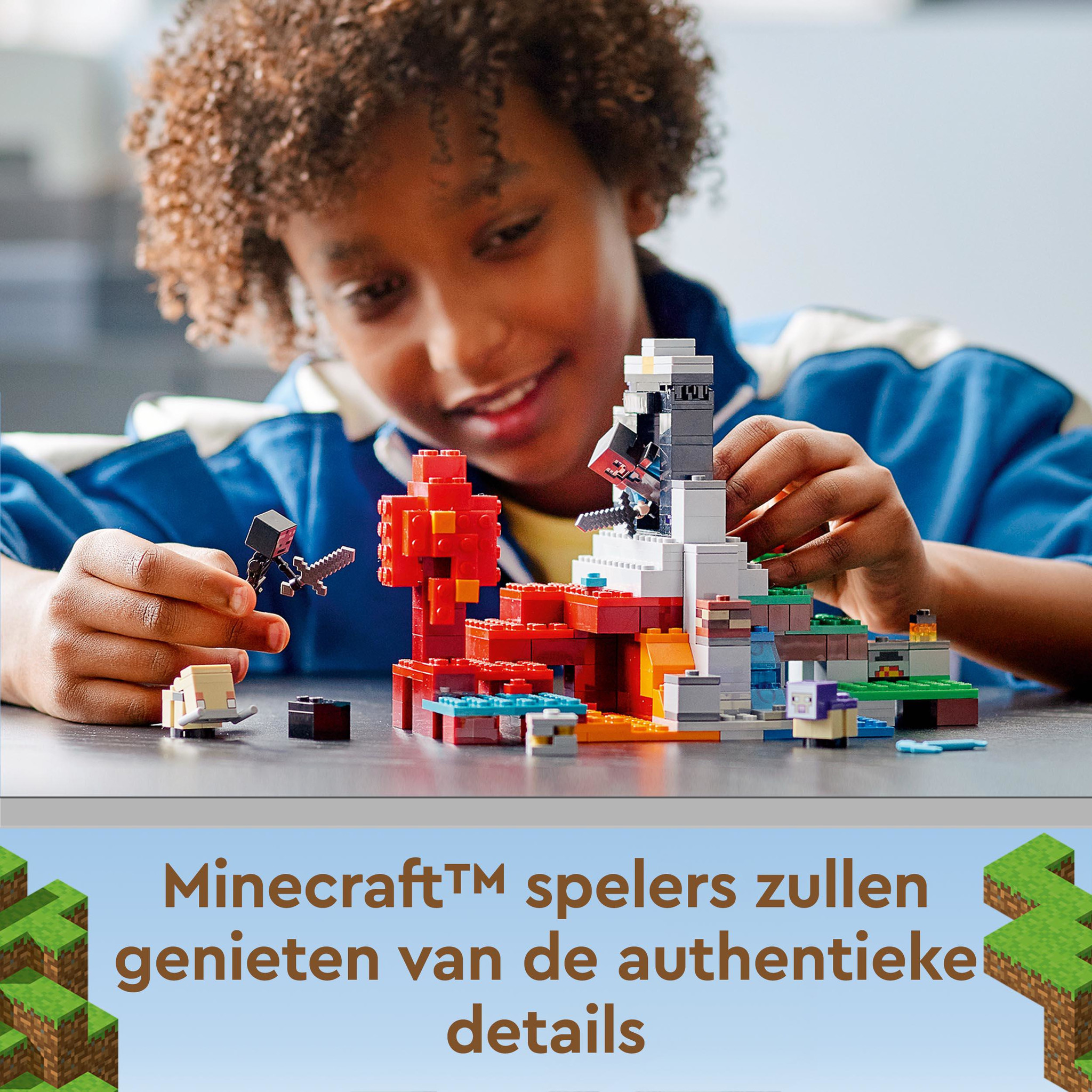 LEGO Minecraft Het Verwoeste Portaal (21172) speelgoed voor jongens en meisjes van 8 jaar met Minecraft poppetjes brengt de passie van een Minecraft speler voor het spel naar een andere dimensie.Kinderen zijn op een missie om Steve, het iconische Minecraf