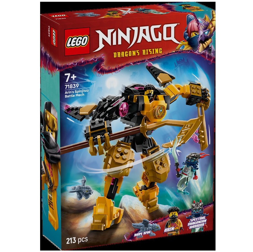 Met LEGO NINJAGO Arins Spinjitzu strijdmecha (71839) kunnen ninjafans vanaf 7 jaar scènes naspelen uit seizoen 3 van de NINJAGO Dragons Rising tv-serie. Dit bouwpakket voor kinderen bevat een LEGO NINJAGO mecha met verstelbare armen en benen die naar al