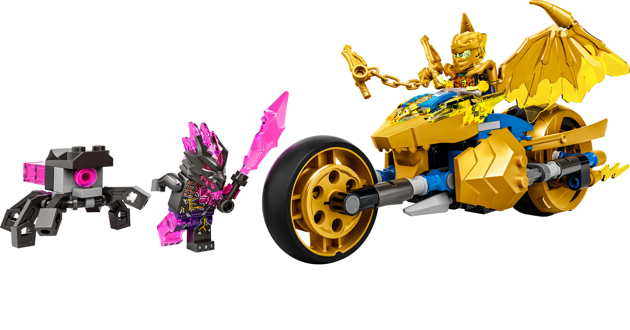 LEGO NINJAGO Jay’s gouden drakenmotor (71768) speelset bevat alles wat ninjafans vanaf 7 jaar nodig hebben om scènes uit de tv-serie NINJAGO: Crystallized op een andere manier te beleven. Kinderen bedenken spannende avonturen met dit speelgoed, waarin ze