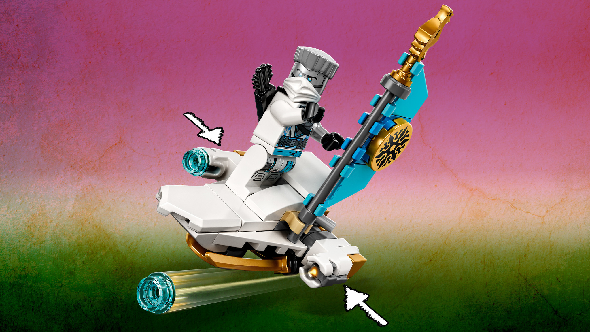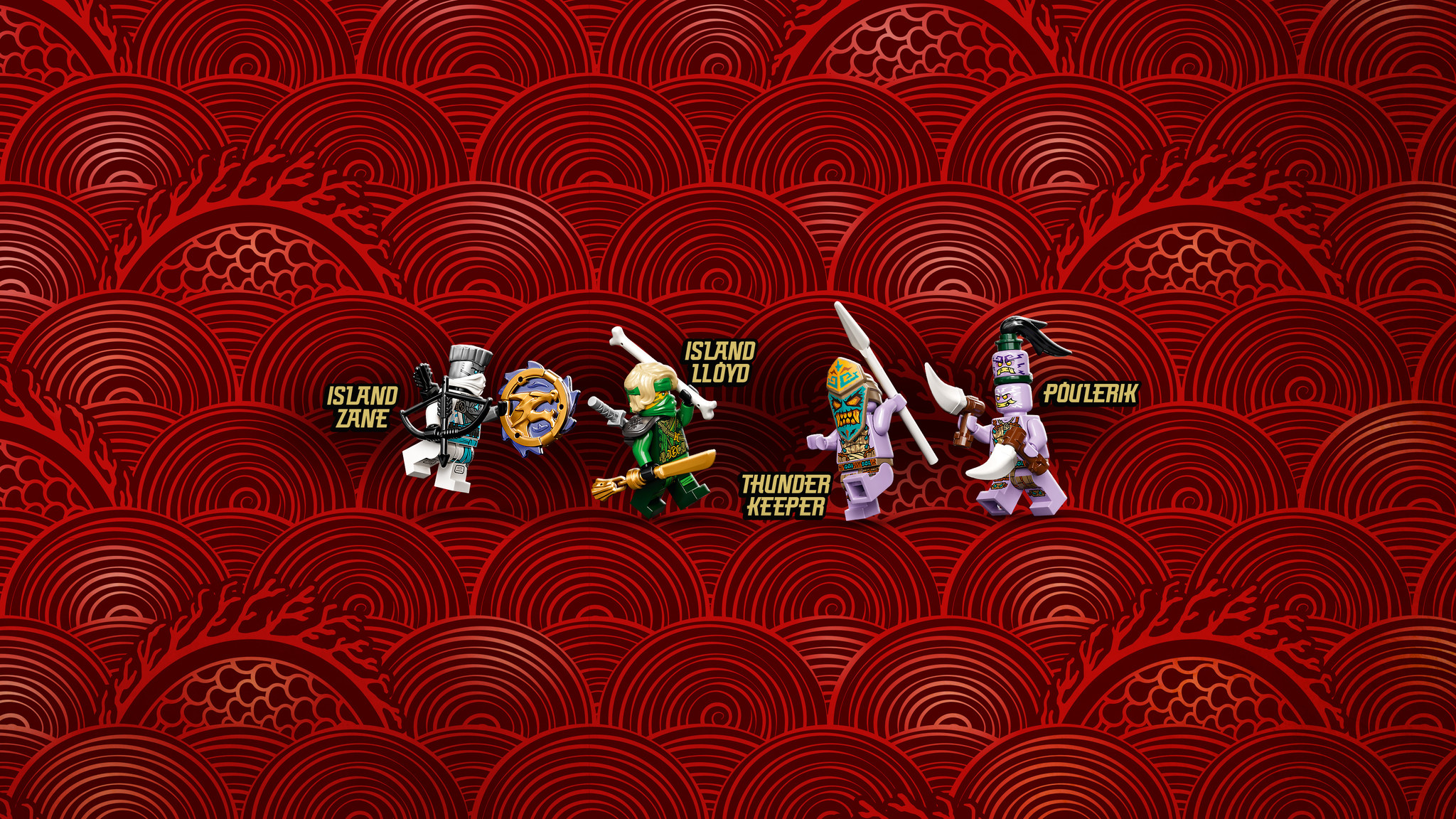 Neem het samen met Eiland Lloyd en zijn machtige draak op tegen de Beschermers in een levensgevaarlijk gevecht. Klim in het zadel en scheer naar beneden om aan te vallen! Eiland Zane schiet te hulp op zijn surfplank en vuurt de noppenschieters af op Po