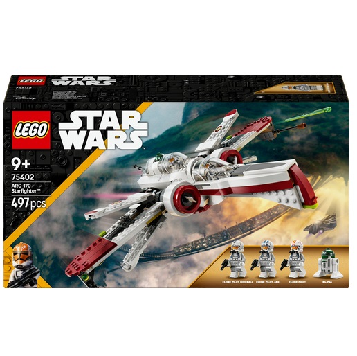 Speel Star Wars: Revenge of the Sith™ missies na met dit ARC-170 Starfighter bouwspeelgoed (75402) voor kinderen. Dit ruimteschip is een leuk LEGO® Star Wars™ cadeau voor jongens, meisjes en fans vanaf 9 jaar en heeft 3 cockpits die open kunnen, 6 vleugels waaronder 4 verstelbare vleugels met hendel voor de aanvalsmodus en vliegmodus, plus 2 schieters met veermechanisme.