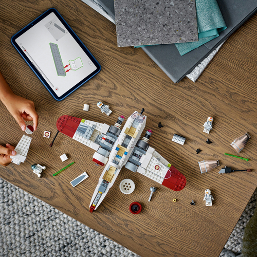 Starfighter van LEGO® stenen – met 3 cockpits die open kunnen, plek voor R4-P44, 6 vleugels, waaronder 4 verstelbare vleugels met hendel voor de aanvalsmodus en vliegmodus, plus 2 schieters met veermechanisme