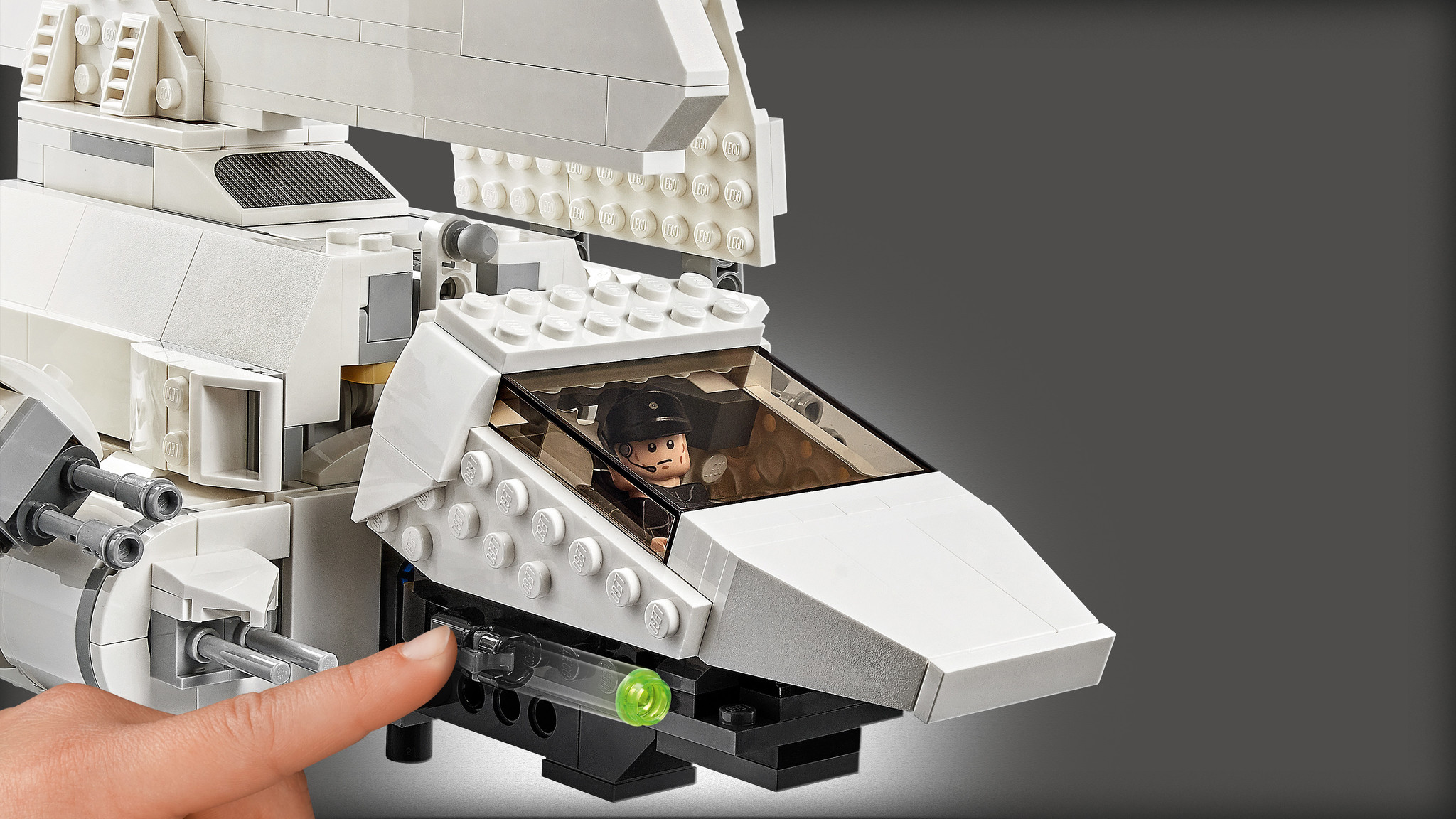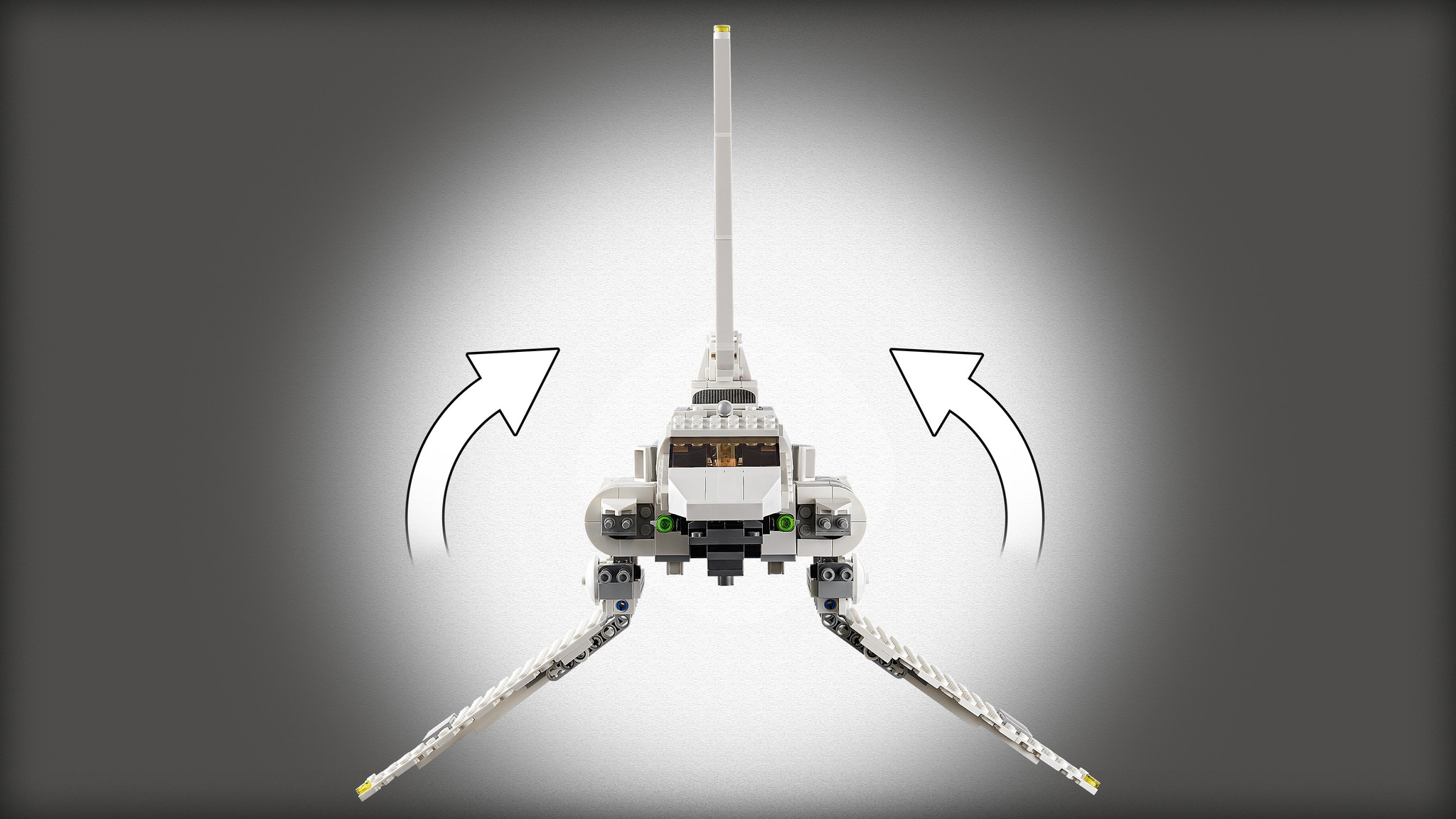 Stap samen met Darth Vader aan boord van de Imperial Shuttle voor wat klassieke Star Wars™ actie! Neem plaats in de cockpit met de Imperial Officer en stijg op met dit elegante transportschip. Vouw de vleugels omlaag om te vliegen en neem starfighters van