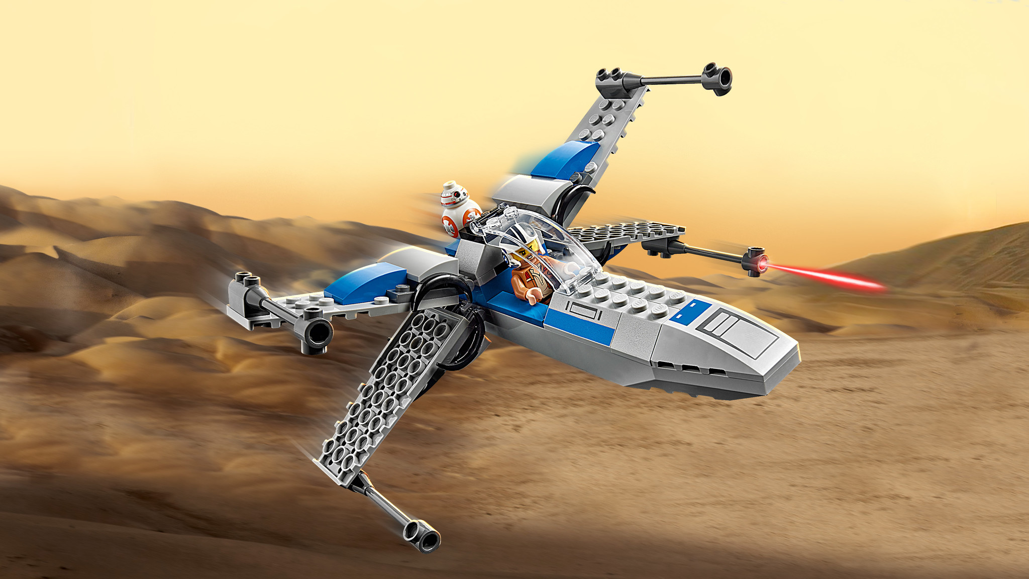 Word samen met Poe Dameron een held van het Verzet! Bouw je eigen geweldige X-wing starfighter en neem plaats in de cockpit. Zorg ervoor dat BB-8 ook aan boord is en vlieg de ruimte in. Klap je vleugels uit en ga voor topsnelheid! Zodra je hebt afgerek