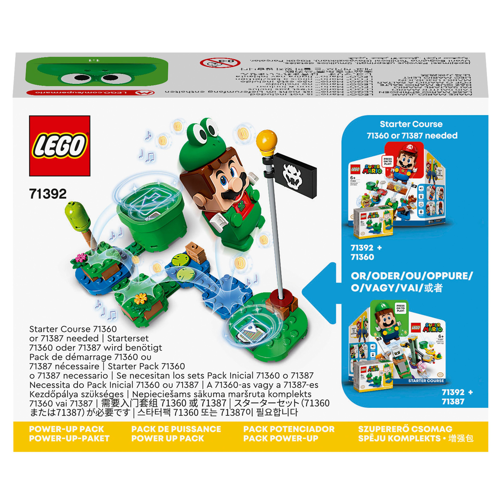 Fans kunnen hun LEGO Super Mario speelervaring nog meer laten spetteren met dit Power-uppakket: Kikker-Mario (71392). Met het interactieve kikkerpak voor LEGO Mario (figuur niet inbegrepen) kunnen spelers extra digitale munten verzamelen door hem te laten