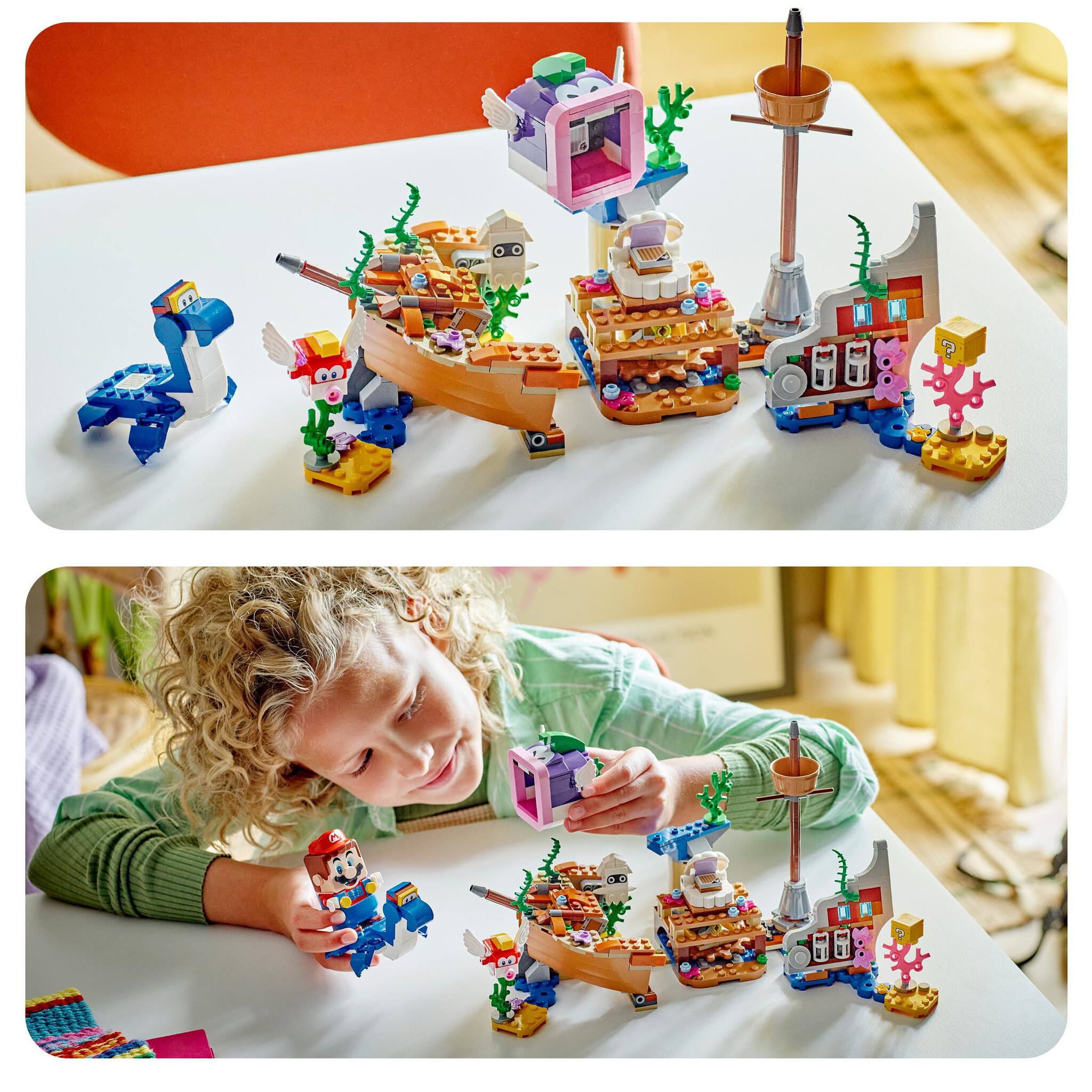 Creëer een spannend LEGO Super Mario onderwaterlevel voor een schattenjacht met de Uitbreidingsset: Dorries gezonken scheepswrak (71432). Rijd op een Dorrie met een interactieve LEGO Mario, LEGO Luigi of LEGO Peach figuur (figuren niet inbegrepen) en v