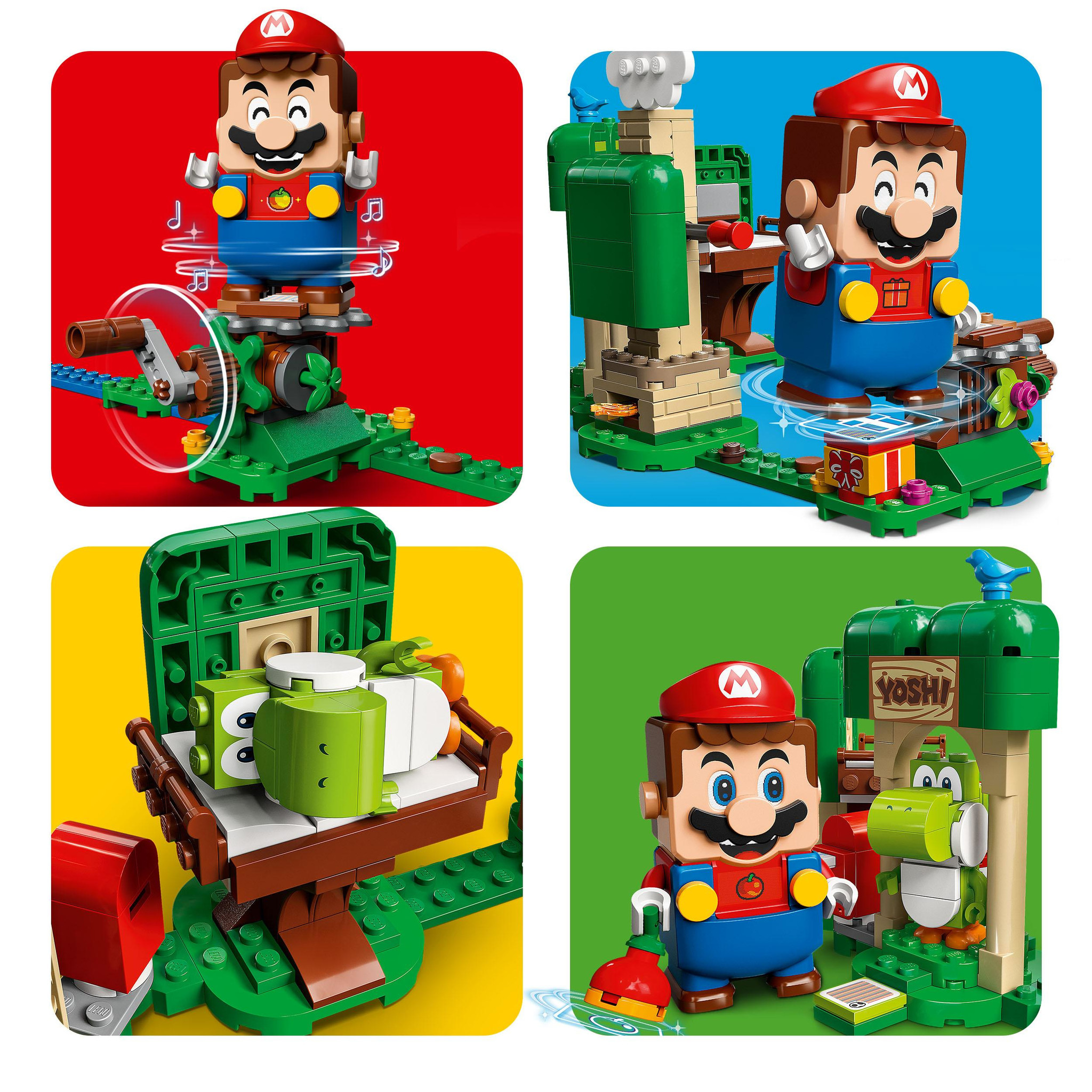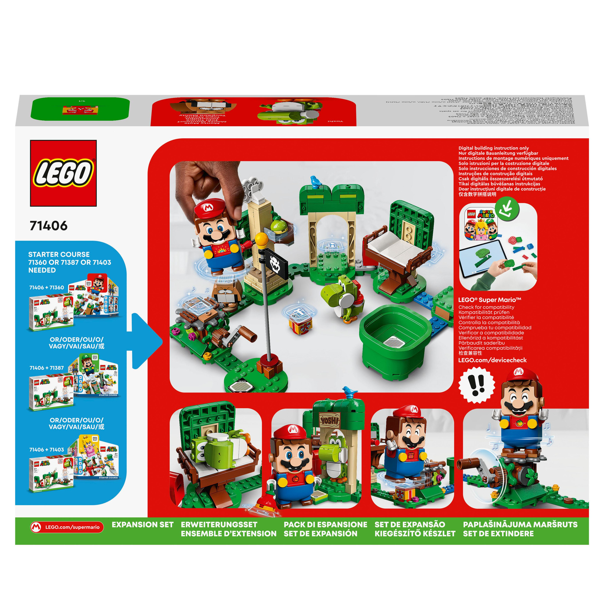 Kinderen vanaf 6 jaar kunnen nog een leuk level toevoegen aan hun LEGO Super Mario wereld met de Uitbreidingsset: Yoshi’s cadeauhuisje (71406). Spelers kunnen digitale munten verdienen met hun interactieve LEGO Mario, LEGO Luigi of LEGO Peach figuren (nie