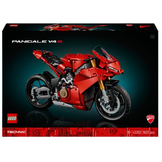 Laat je hart sneller kloppen met deze LEGO® Technic Ducati Panigale V4 S motor (42202) bouwset voor volwassenen. Met indrukwekkende details en authentieke kenmerken is dit een eerbetoon aan de echte Ducati Panigale V4 S – de best presterende motorfiets en de snelste racemotor van Ducati.