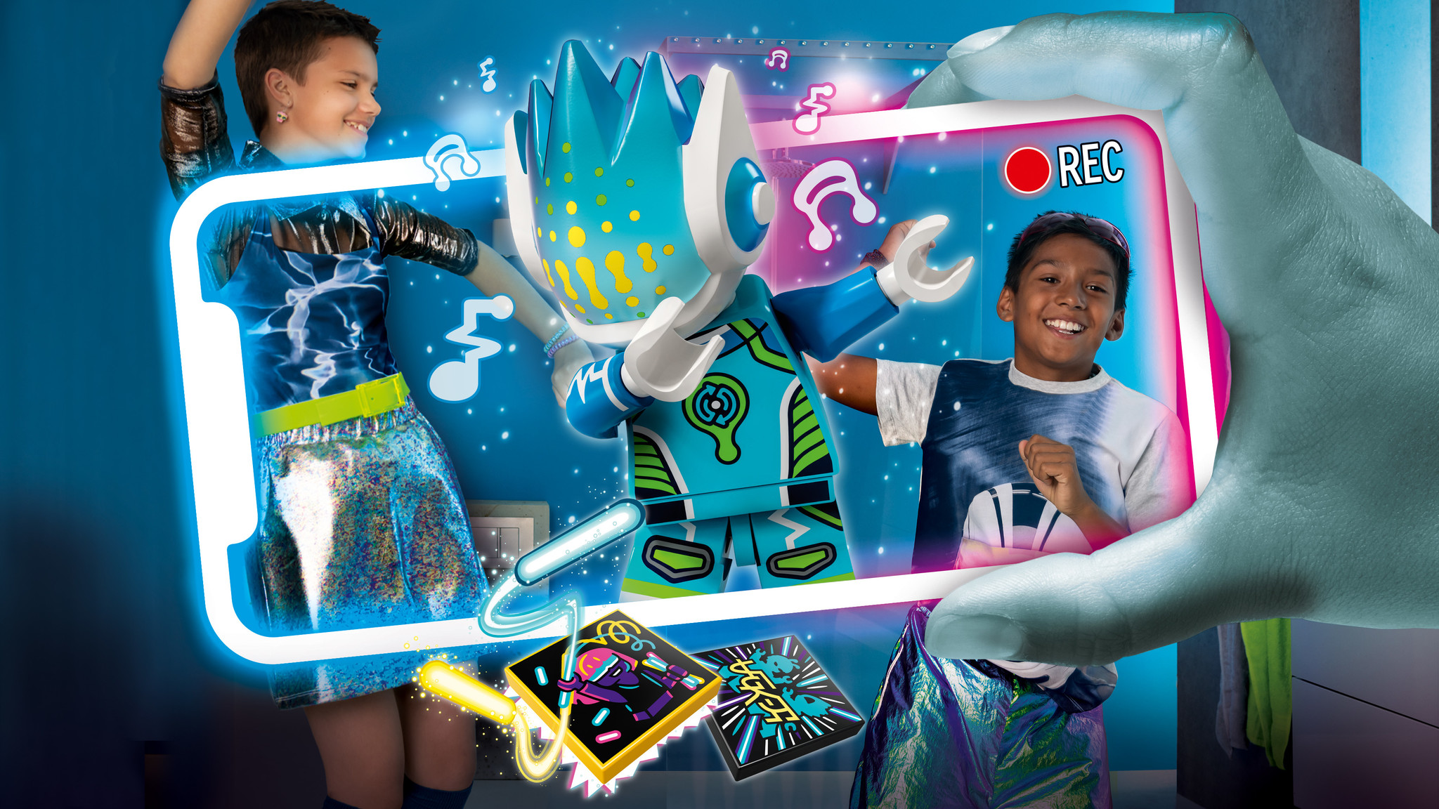 Regisseer, produceer en speel de hoofdrol in je eigen muziekvideo’s met de LEGO® VIDIYO™ Alien DJ BeatBox (43104) set. Gebruik de app om de buitenaardse dj tot leven te brengen in een muziekvideo van een andere planeet die je online kunt delen. Probeer ve