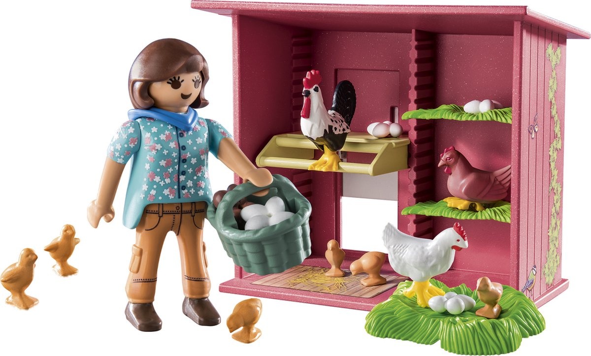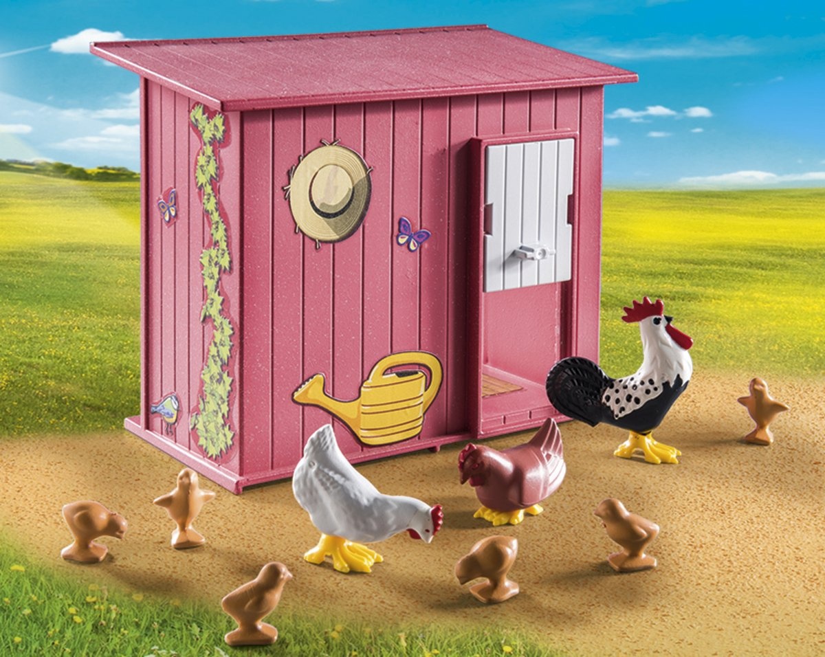 Wat zou een boerderij zijn zonder kippen? De kippen kunnen op je boerderij komen wonen met deze kleurrijke PLAYMOBIL speelset. Het kipp