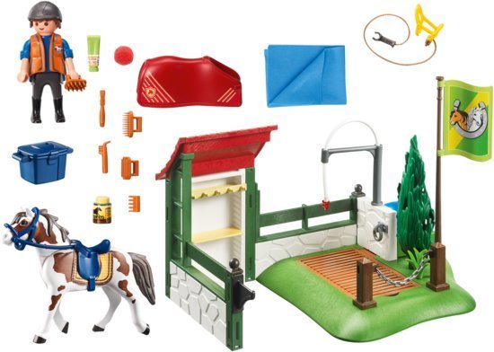 Vandaag is het wasdag! Rustig leidt de paardenverzorger alle trouwe dieren naar de paardenwasplaats. Daar is alles al voorbereid. Langzaam draait hij de kraan open. Wat een geluk, het paard lijkt vandaag goed gehumeurd te zijn en wel zin te hebben in e
